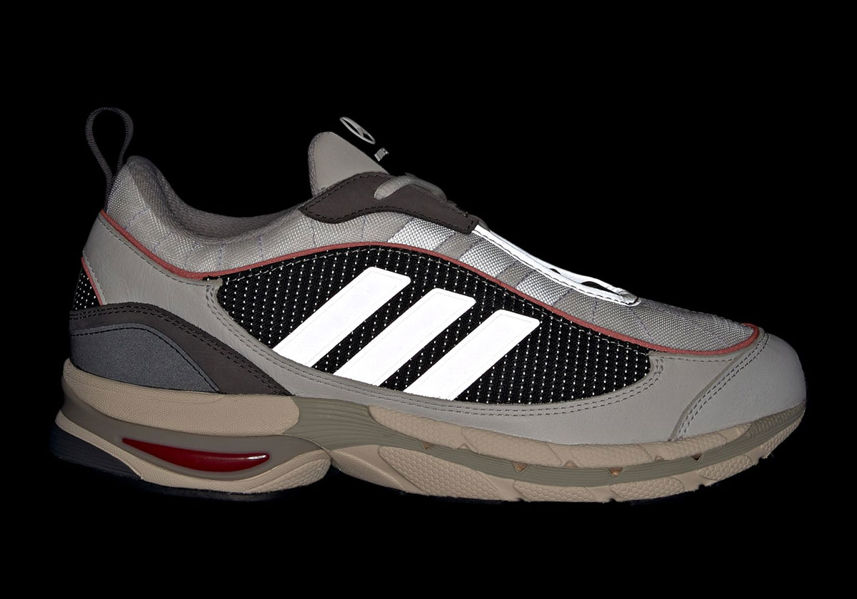 Then it’s over to the Megaride GT, a novel inclusion sporting a trending tech choice for the brand seen with the Predator Megaride in recent inline applications. The same black and red shadings act as contrast notes to a Y2K-steeped, ridged chrome body. Of course, the propulsion hardware remains the primary focus, splayed out with six bisected pods underfoot. Finally, the Three Stripes has presented the adiStar Control 5 as a defining face with milestones like the Sporty & Rich collection, but we couldn’t fault you for not recognizing it here. Though the cushioning platform remains in place, a layered, wavy mesh build replaces the traditional tech-runner overtones it wears.