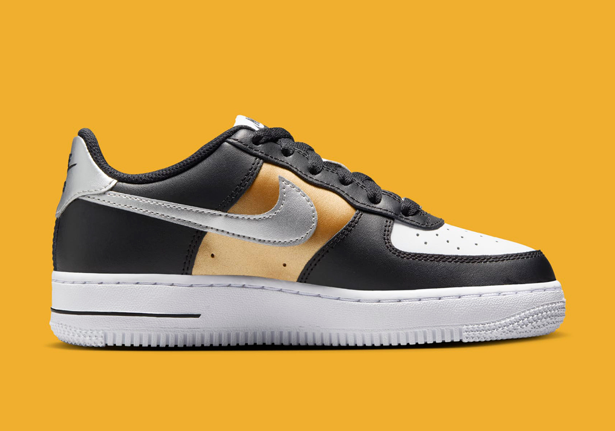 Metallic Silver And Gold Touch Up This Nike Air Force 1 Low For Kids