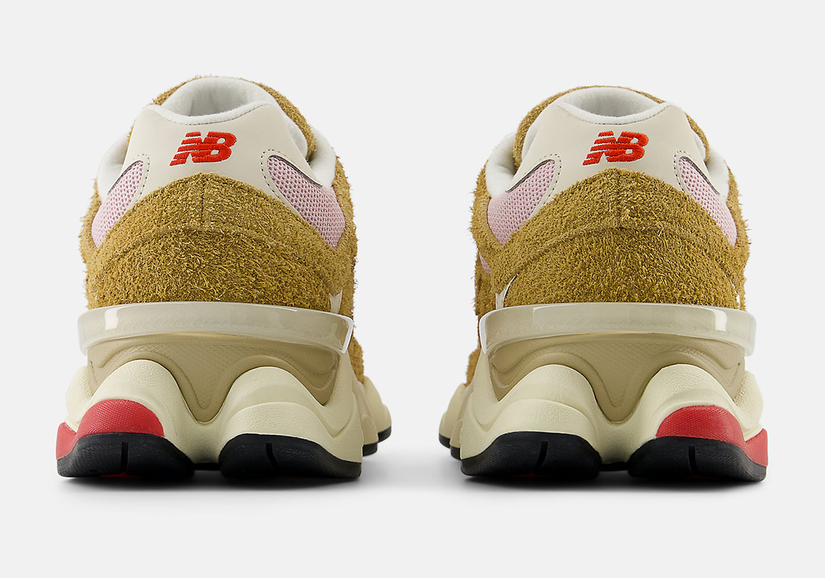 Using the aforementioned “Great Plains” 9060 as a starting point, New Balance’s next effort features identical hairy suede, mustard yellow overlays. The real intrigue lives on the ancillary elements, where pink and red hits steer the design far away from its predecessor’s contemporary aesthetic. Imposing “True Red” treatments touch up the New Balance logos, tongue branding, and bottom portion of the midsole, while “Twilight Haze” lands gently on the mesh base.