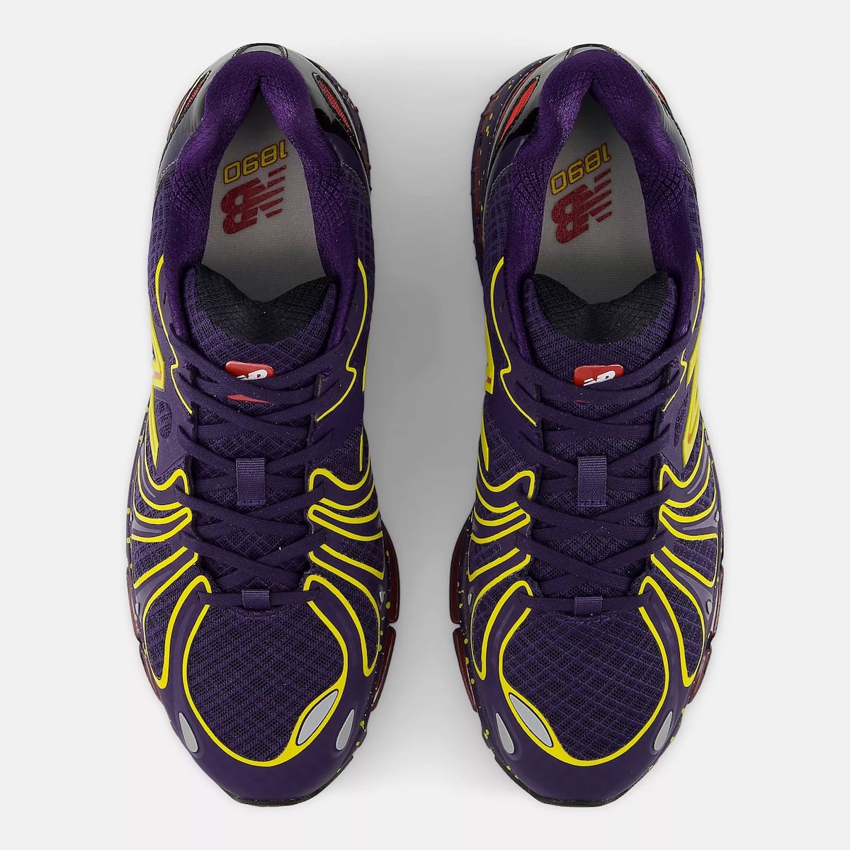 The first public appearance of New Balance’s 1890 model surfaced early in 2025, during the January Paris Fashion Week. The shoe was originally teased in a moccasin construction for the upper, which we now know as the 1890A, coming later this year. The standard-issue version of the new model is much more in-line with what we expect from NB, a techy runner with plenty of layering and unique shapes across the upper. The forefoot features a series of tooth-like taped overlays reaching from the mudguard to the laces, giving the 1890 a very aggressive aesthetic. This week, the Boston brand has added a new color to their release calendar for next week, coloring the shoe in “Boysenberry” purple. This dark regal shade is paired with Punch Yellow accents for mid layers and N logos, with a splash of red to complete the look.