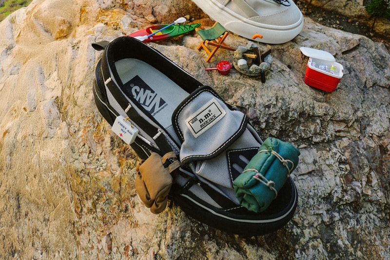 Vans and designer Nicole McLaughlin have reunited for a second collaboration, taking the upcycling expert's utilitarian sensibilities to new heights. Adding additional tactical components and building upon the Slip-On RS with matching accessories, McLaughlin offers an unconventional yet functional take on the shoe brand's classic silhouette.Mirroring the design language of traditional trekking backpacks, the design is centered on a roomy cargo pouch over the toe box and adjustable nylon straps. The playful campaign highlights the miniaturized details of the design with additional tiny objects, including a miniature version of McLaughlin's studio and an array of hiking gear.On her latest Vans creation, McLaughlin said “Creating pieces that can be multi-purpose, but also fun has always been my goal. I was inspired by vintage hiking packs from the ‘70s and the aesthetic of outdoor gear from that era for the collection,” in an official statement.Beyond aesthetic inspiration, the Slip-On RS lives up to its hiking-inspired sensibilities with uppers comprised of 40% recycled canvas treated with water-resistant PFC-free DWR and a lugged tread pattern on the outsoles guaranteeing multi-surface traction. The pair is offered in a monochromatic natural canvas colorway and a duo-tone charcoal colorway with black trims and details. Each model showcases vintage co-branded details including a Vans N.M. Rucksack patch above the storage pouch and wordmarks printed on the insoles. Extending the functional aspects into the accessories, the collection also offers ankle socks with patch pockets and a utilitarian Rucksack that doubles as a climbing chalk bag.Known for her resourceful approach to repurposing garments and whimsical design details, McLaughlin's new Slip-On RS builds upon the designer's growing roster of shoe collaborations. McLaughlin first collaborated with Vans on a comparatively pared-back Slip-On VP VR3 LX in 2023 and has since released collaborative shoes with Merrell, HOKA, and more recently, PUMA. The designer has also produced many DIY one-offs including a jacket made of PUMA goalkeeper gloves and a stool made with discarded JanSport packs.The latest Vans x Nicole McLaughlin collection will be released on Nicole McLaughlin's web store on Wednesday, February 26. On February 27, the collection will arrive on the Vans web store and select locations.Click here to view full gallery at Hypebeast
