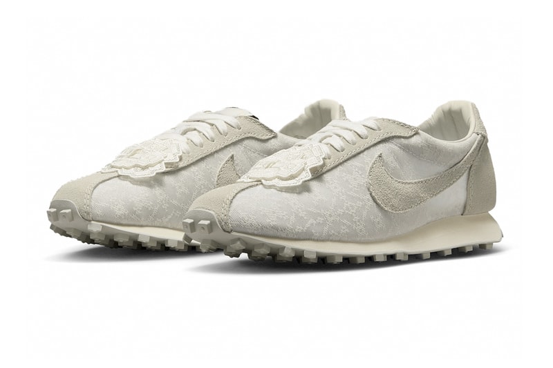 The shoe rests on a beige midsole and Waffle outsole, offering improved traction. Tying the women's exclusive together is a set of white laces that's topped off with a sizeable jacquard charm — a sleek final touch.