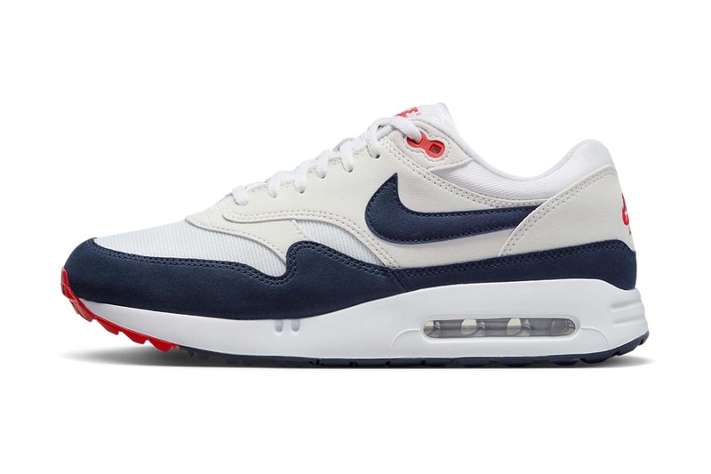 When it comes to golf Nike has been applying a particular amount of energy into its Air Max series as of late, unveiling a revamped "Big Bubble" unit in anticipation of Air Max Day. Shortly after, the brand started to roll out its limited-edition releases for golf's four majors using the AM1 as the centerpiece.Similar to “Sport Red” Nike has now rebooted another one of the classic Air Max 1 colorways for the golf course, this time with “Navy/Red.” The OG colorway first made its debut back in 1987, and the made-for-golf version is a mostly faithful recreation of the original pair.Featuring a similar theme of color blocking, a satisfying and subtle contrast is created between the pearly white mesh toe boxes and midsoles and the off-white leather paneling. As for the titular hues, those are found via the full-length navy suede mudguards, heel overlays and Swooshes. Meanwhile, red is used for the hits of Nike branding at the tongues, heels and insoles, as well as on the eyelets and toecaps. As with similar spikeless shoes, the tread pattern is raised to provide more traction on the fairwaysTake a closer look via the gallery above, taking note of the contrast of textures between the overlays, underlays and toe boxes. The kicks have no release date as of yet, but keep an eye on Hypegolf IG for updates.Elsewhere in golf, check out our recap of the first-ever Hypegolf Invitational in Korea. Click here to view full gallery at Hypebeast
