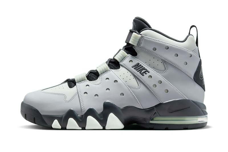 Following the release of the 2024 return of the Nike Air Max CB 94 "White/Varsity Purple", the Charles Barkley signature shoe arrives in a "Dark Smoke Grey."Featuring greyscale hues with a hint of "Barely Green," the mid-90s retro shoe returns with a contemporary palette. By pairing both light smoke grey and light silver shades over the leather clad upper, dark smoke grey contrasts the midsole, tongue, laces and heel tab that shows off the Nike insignia. A bit of green animates the 270-degree Max Air cushioning system and treats the elastic straps of the quarter and portions of the tread for a glow in the dark finish. Look out for the Nike Air Max CB '94 "Dark Smoke Grey" arriving in 2024 for $170 USD at select retailers and online at Nike.Click here to view full gallery at Hypebeast