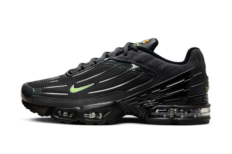 Nike's Air Max Plus 3 silhouette has surfaced once again this year in a stealthy "Black/Volt" makeup. The silhouette, which debuted first in 1990, first re-emerged in its latest variation in 2019.