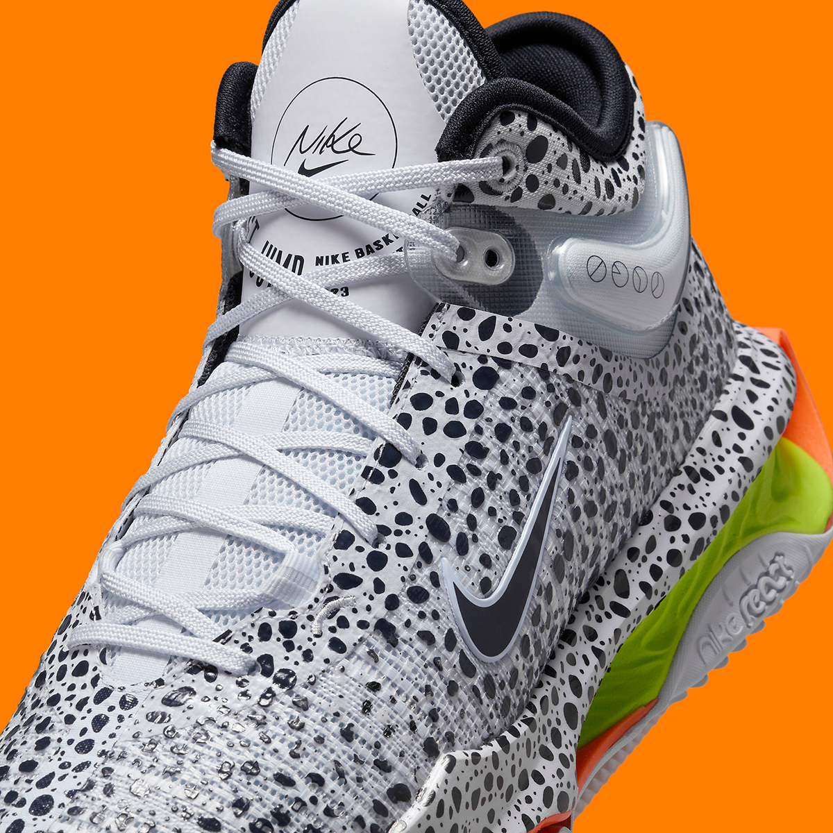 To celebrate the energy around the game, Nike Basketball will unleash its latest generation of its Greater Than line-up covered in an all-over-print of the iconic Safari. Up top, the Tinker Hatfield-founded pattern arrives in light grey and black, while touches of a blazing hot orange appear underneath where the highly-touted cushioning systems are positioned.