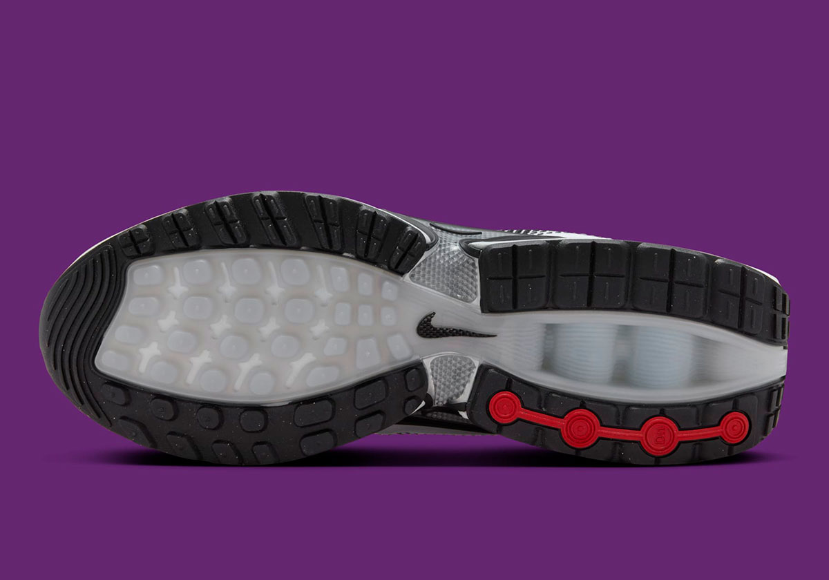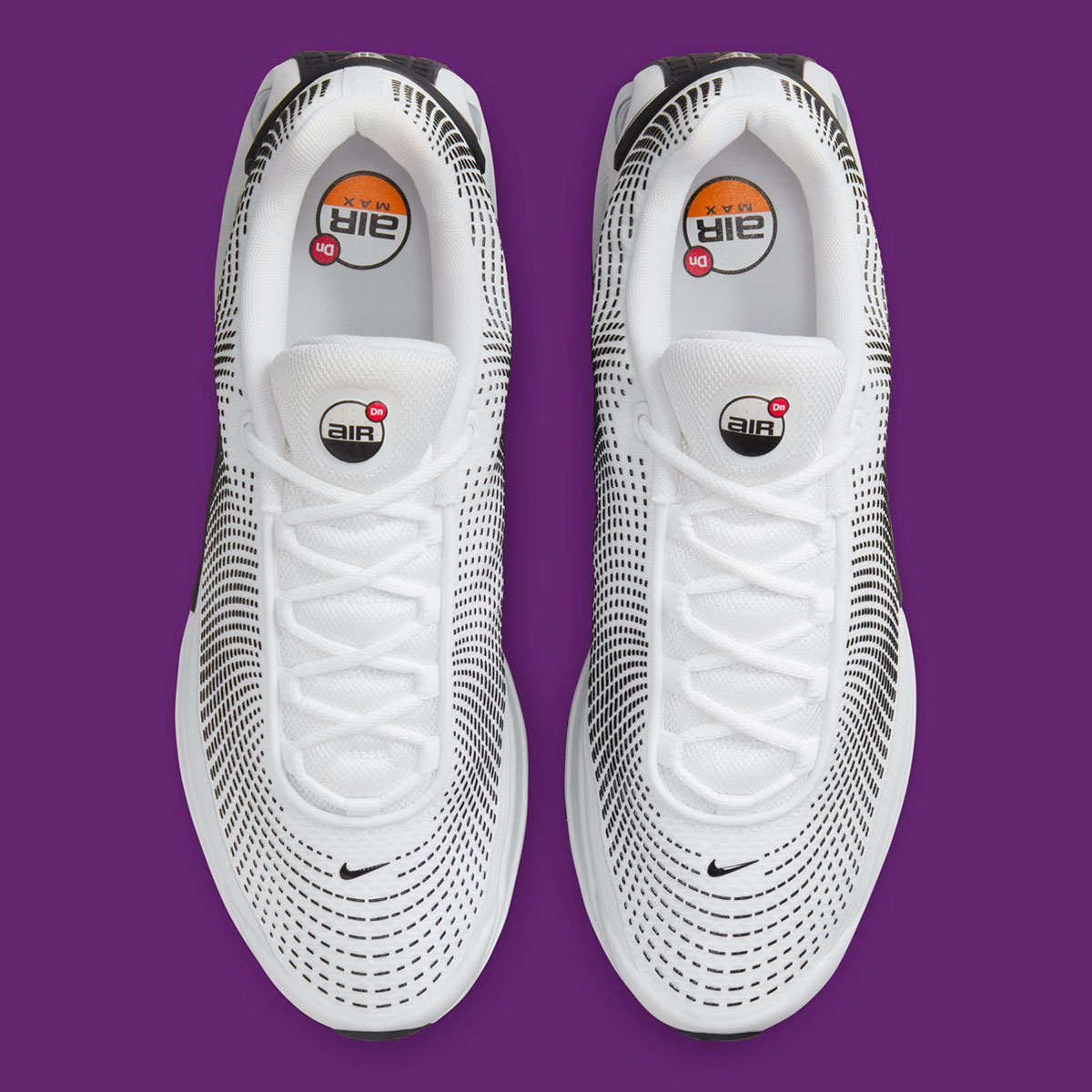 Prioritizing simplistic style, pure white is applied in heavy doses on the multilayer mesh upper, the solid mudguard and the midsole. The haptic print over top takes to jet black instead, matched by the trim around the heel branding that continues through the outsole. Comprising a monochromatic overall look, that hueless profile is only interrupted with the typical yellow Dn branding and a splash of ruby red further underfoot, an aesthetic that slides this pair into a deep group of vaunted Nike, Inc. black/white looks.
