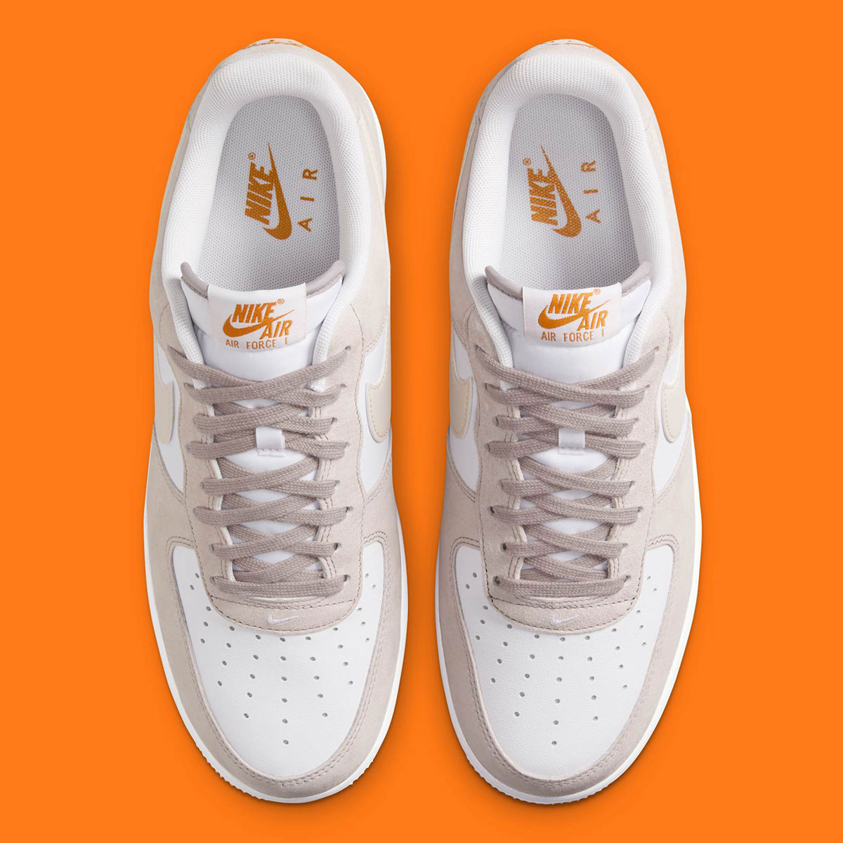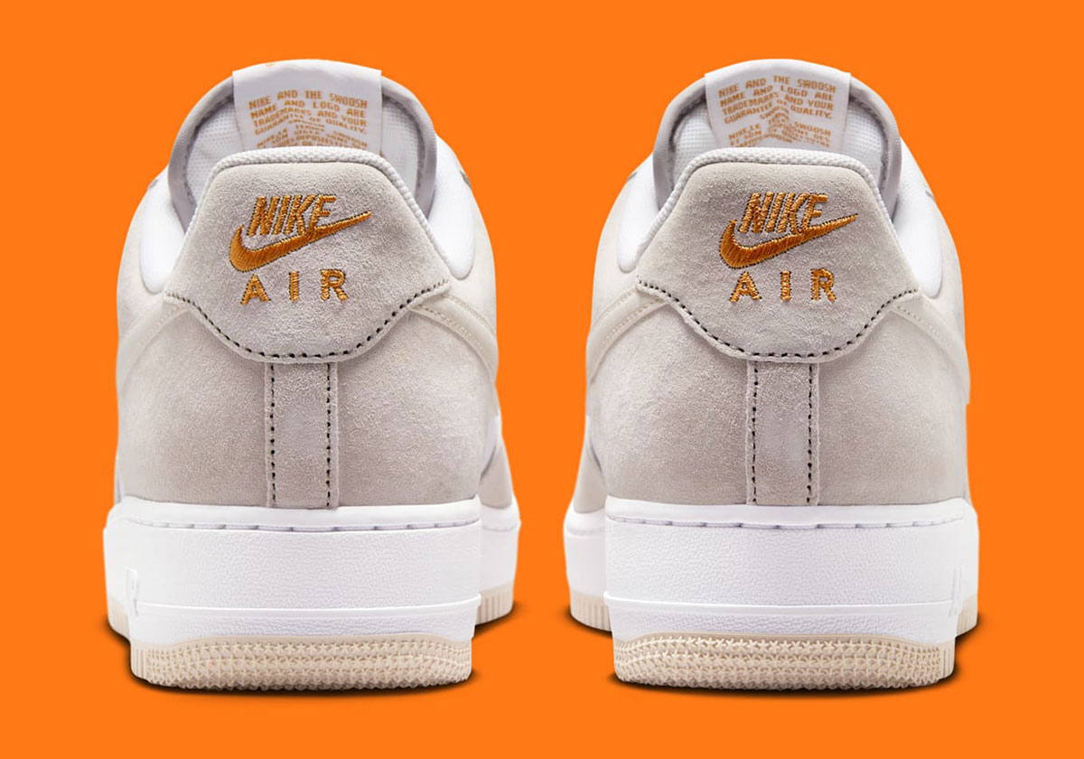 The design kicks off with your standard white leather base, overlaid by “College Grey” suede and “Summit White” on the Swoosh and outsole. “Laser Orange” is utilized as the accent color, dotting the tongue and heel branding.