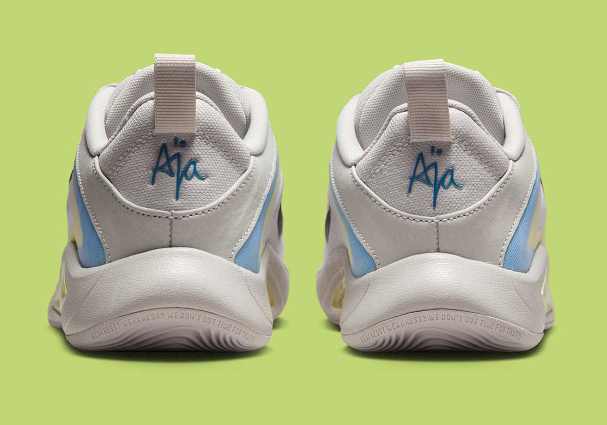 With the “Pink Aura” launching earlier in May and two colorways hitting store son May 15th (the “OG Pearl” and “Indigo Girl”), Nike still has more A’One offerings to go this month. This kids-exclusive release adds a bit of color-blocking flair, hitting the upper with a Vast Grey base and accents of Life Lime and University Blue. A black Swoosh adorns the upper, matching A’ja personal logo on the tongue.