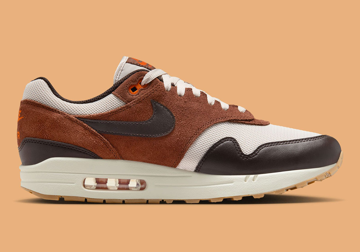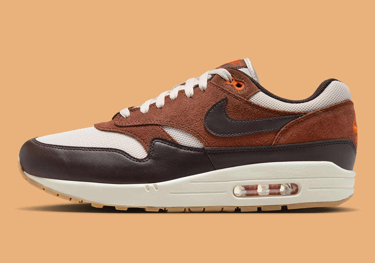 This upcoming iteration of the Air Max 1 Essential captures everything about the late-November festivities, color-matching some of our favorite foods from the Thanksgiving Holiday. A mix of brown shades in Light Orewood Brown, Fauna Brown, and Velvet Brown bring that perfectly roasted bird to the cutting board, while touches of Campfire Orange add the decorative accent that lines dinner tables across the nation.