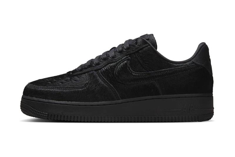 Similar to its white predecessor, the upcoming shoe switches out its traditional leather build with black pony hair uppers. The texture stretches from toe to heel, even covering the panel swoosh. Additional branding lands on the square tongue tag, insoles and debossed Nike Air heel logo — all of which arrive in a complementing black hue. The sneaker then rests on a black midsole and outsole, with black laces tying it together for a cohesive finish.