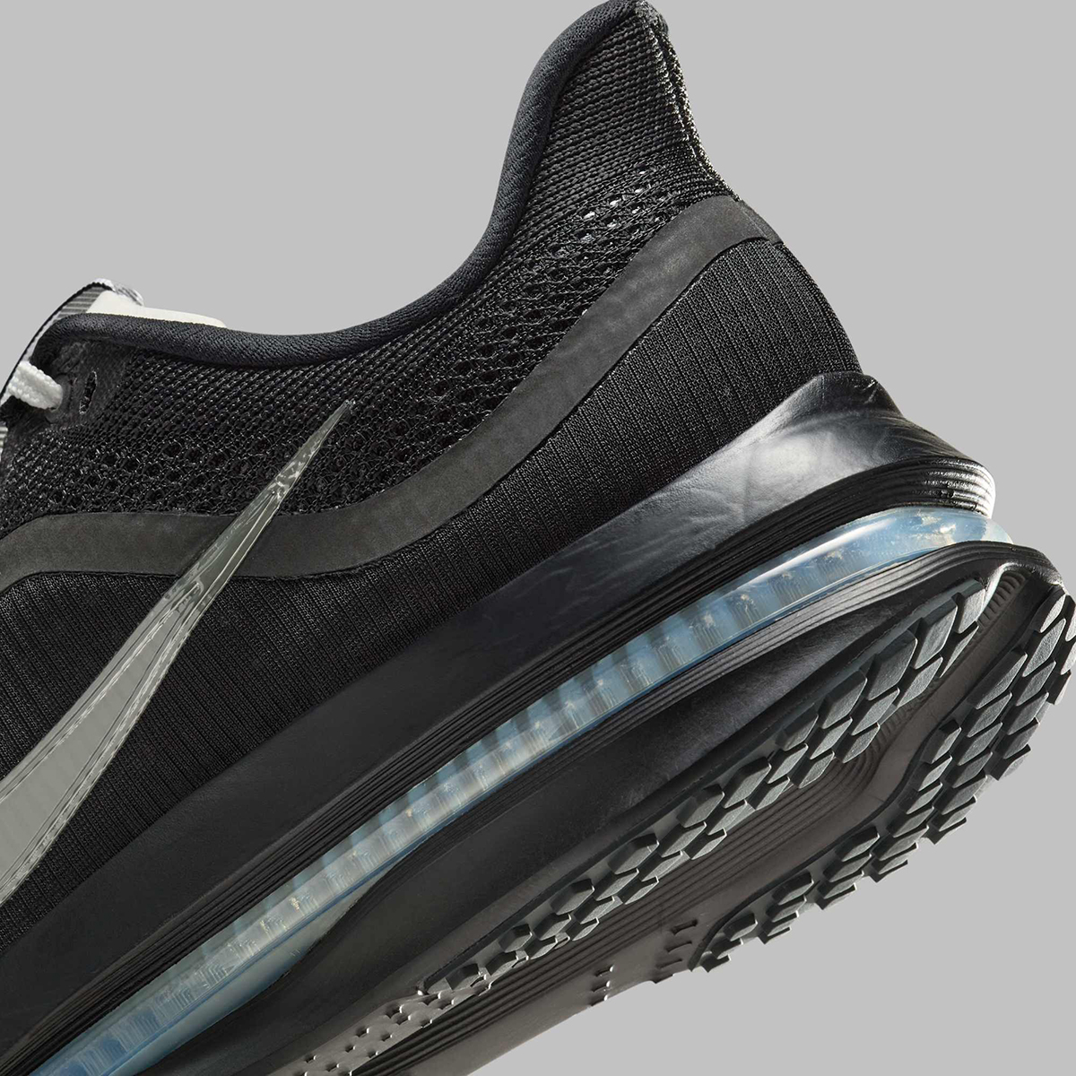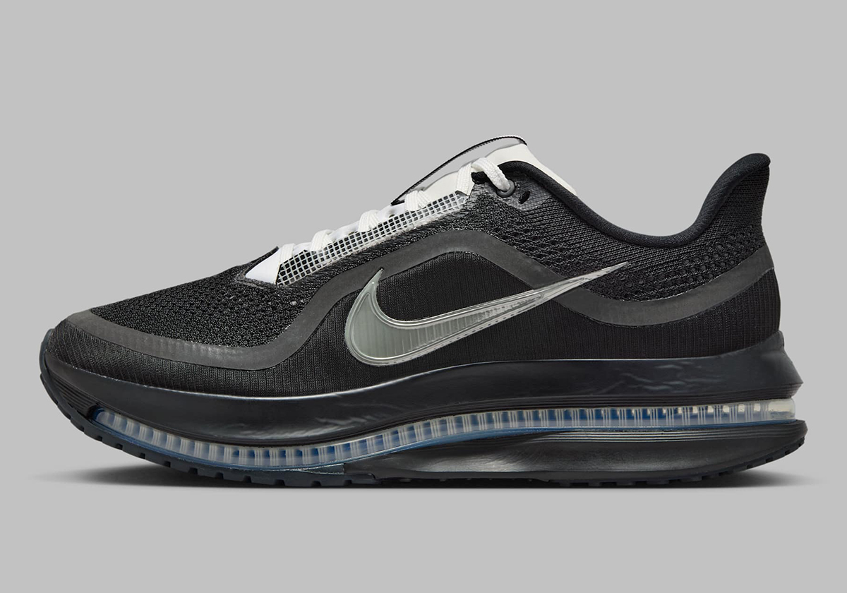 While not necessarily adventurous, the colorway too breaks from tradition with black base and white tongue for stark contrast. The Swoosh logos come in “Metallic Silver,” while a subtle blue tint looms on the Zoom Air unit underfoot.