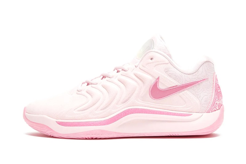Nike and Kevin Durant are carrying on a long-standing tradition that stems from 2012. In honor of his beloved late Aunt Pearl, Durant continues to release designs that reflect his aunt's influence with his coveted Nike shoe lines. The upcoming KD 17 silhouette is receiving a special treatment which sees the shoe dressed in pink foam and beyond pink hues. The upcoming design sees the shoe sit on a pink outsole featuring complementing Swooshes. To match, the shoe also has embroidered "AP" and "KD" heel accents intertwined with pearl patterned embroidery. Look out for the pair arriving this holiday season.