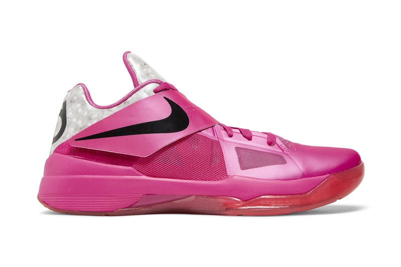 Just a few months after Kevin Durant and Nike released the Nike KD 16 in the "Aunt Pearl" colorway, dedicated to the basketball player's dear aunt, another silhouette returns in the same hue for later this year. The Nike KD 4 in the same "Aunt Pearl" colorway was first released in May 2012. Now, the iconic sneaker is making its wait to shelves by the end of 2024.Paying tribute to his Durant's beloved aunt who battled lung cancer, the KD 4 "Aunt Pearl" commemorates her and her loving nature. The shoe is constructed in all-pink mesh and overlays across the upper. As a nod to Aunt Pearl, a pearl graphic is seen on the tongue, while the color symbolizes the Think Pink campaign in support of breast cancer. The shoe's midfoot strap features a Swoosh in all-black while tidbits of a pearl's reflective surface is sen on the heel and parts of the tongue.Look out for the Nike KD 4 "Aunt Pearl" arriving in Holiday 2024 at select retailers and online at Nike for $130 USD.Click here to view full gallery at Hypebeast