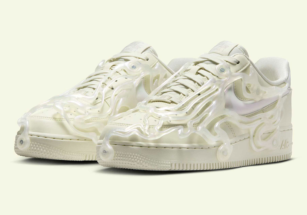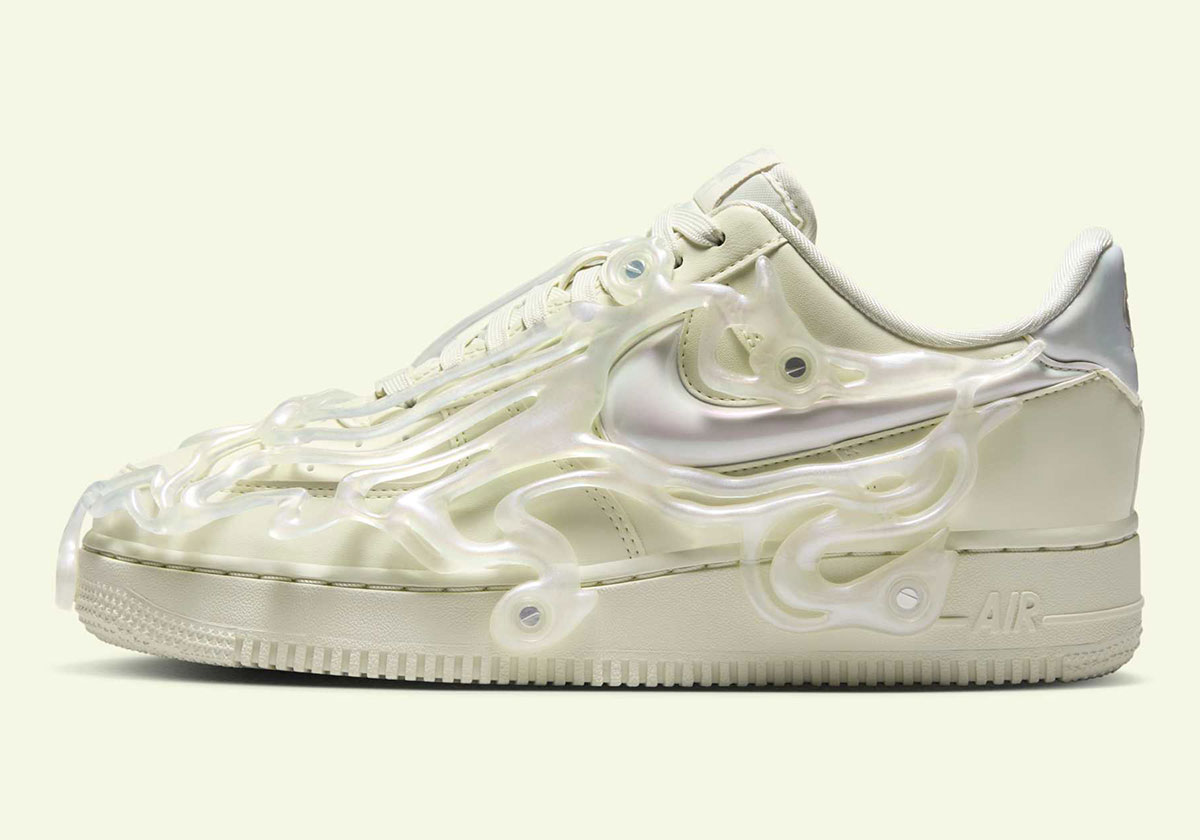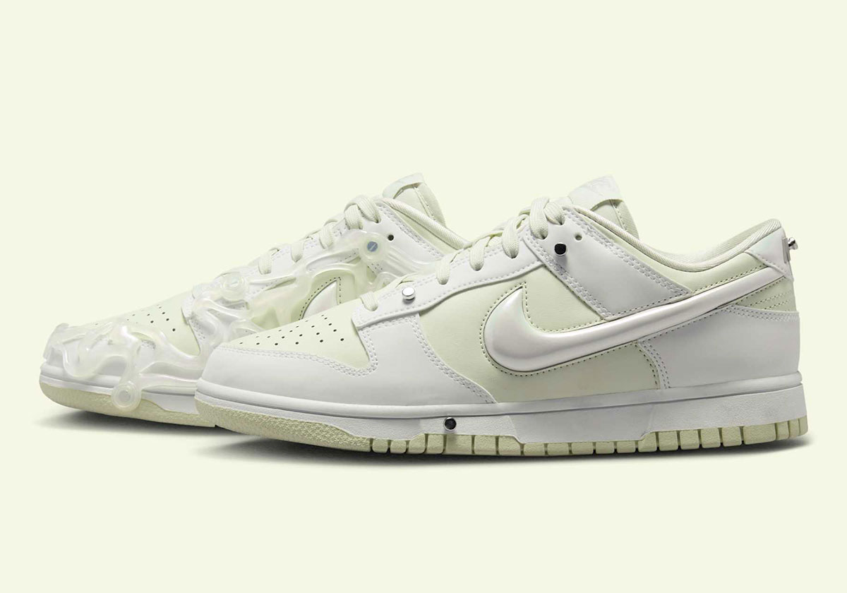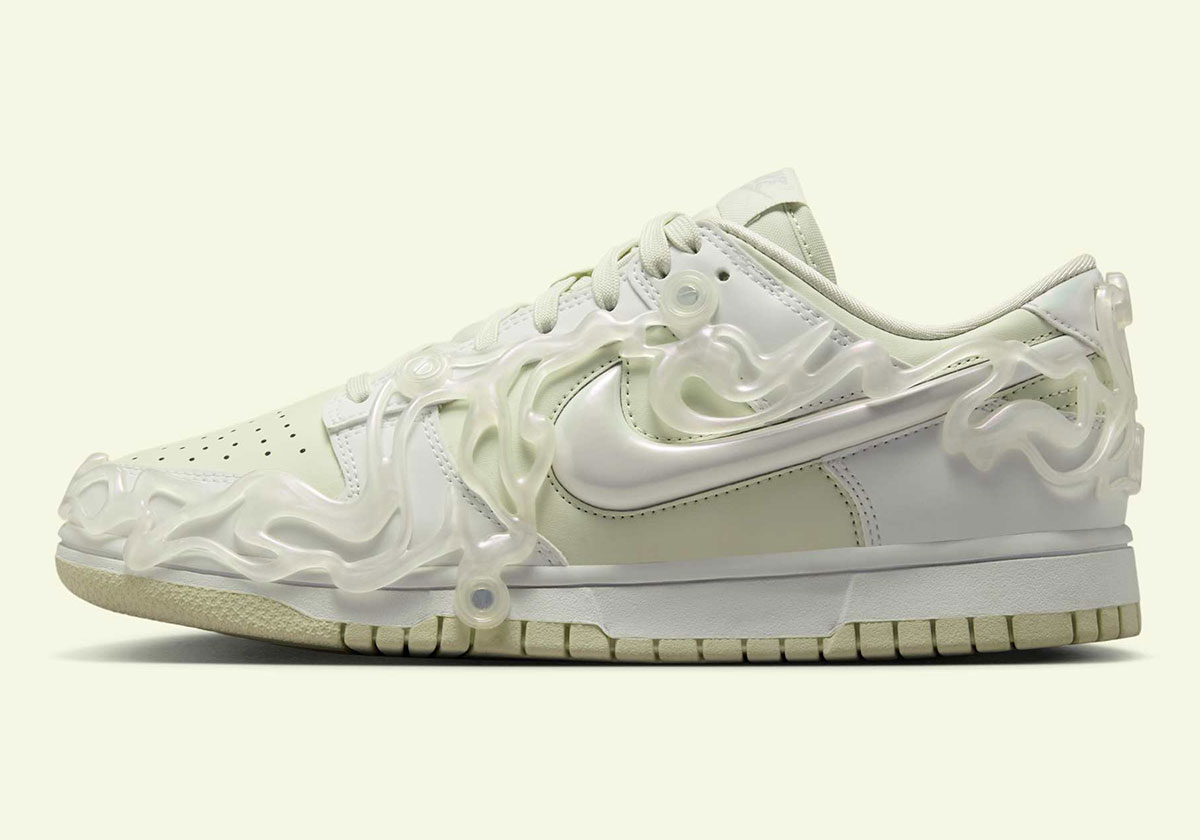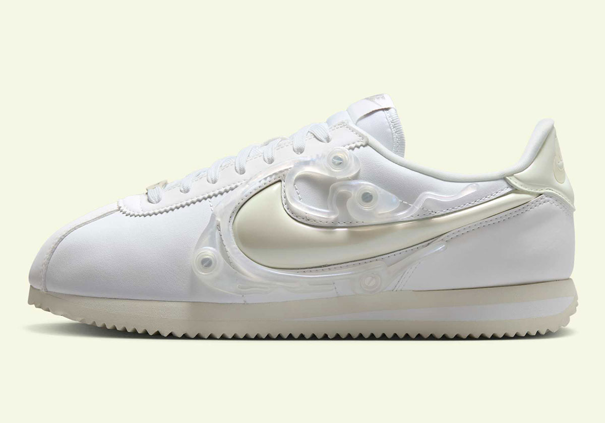 The main draw is easily understood at first glance; new TPU cages surround each of the three shoes, weaving clear “Sea Glass” across the profiles of each shoe. The Cortez gets the lightest treatment of the group, but the Dunk Low and Air Force 1 are entirely overtaken by this novel hardware. While the new touch certainly makes a strong impression, do note that the TPU addendums are indeed removable, literally screwing into the body of each shoe with pearlescent bubble fasteners.