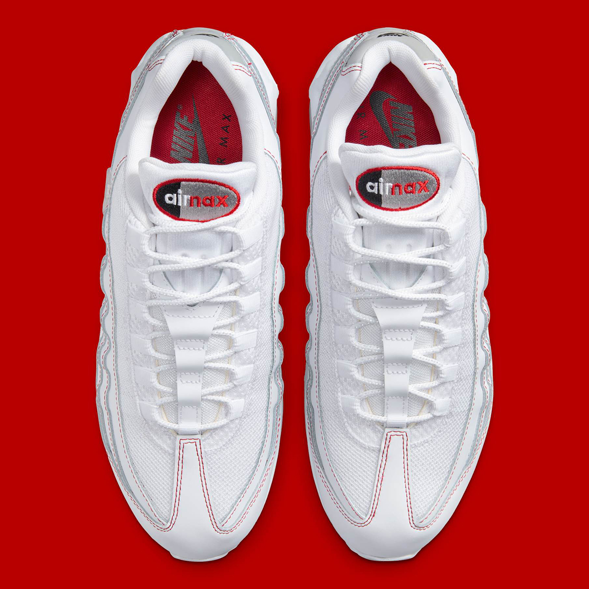 To clarify, certainly more collaborations could be coming down the pike, but this pair and outfits similar showcase how the “Big Bubble” continues to spread into more and more colorways rather than a single do-up siloed to Air Max Day 2025. This “Candy Cane” edition may not be an OG yet it strikes similar classic territory with a simplistic logline, utilizing a “Triple White” base with vivid “University Red” contrast stitching throughout. A stripe of light grey on the heel and the jet black Nike Air brand enclosed within interrupt this two-tone arrangement and fulfill the shades promised with the OG Air Max 95 tongue tag.