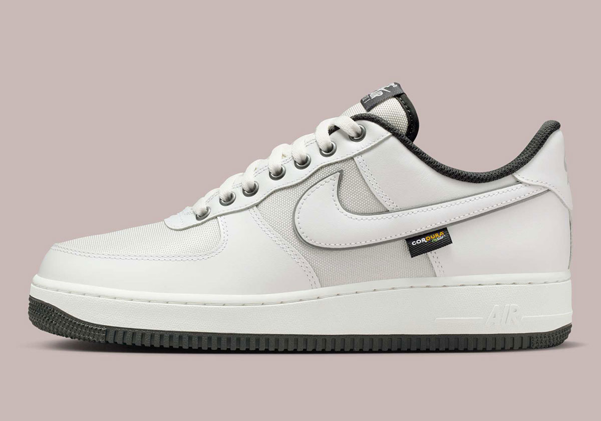 Official images reveal a construction identical to a recently-previewed “Dark Obsidian” Cordura AF1. Durable, weather-resistant Cordura material appears on the toe box, tongue, and quarter, while the rest of the upper favors white leather. Metallic silver eyelets and doubled-up Swoosh logos add to the shoe’s rugged appeal, while grey hits on the lining, tongue tag, and outsole break up an otherwise all-white colorway. This is one of several Cordura-clad Nike sneakers releasing in 2025, joined by an Air Max Plus, Air Max Sunder, and likely a few more AF1s.
