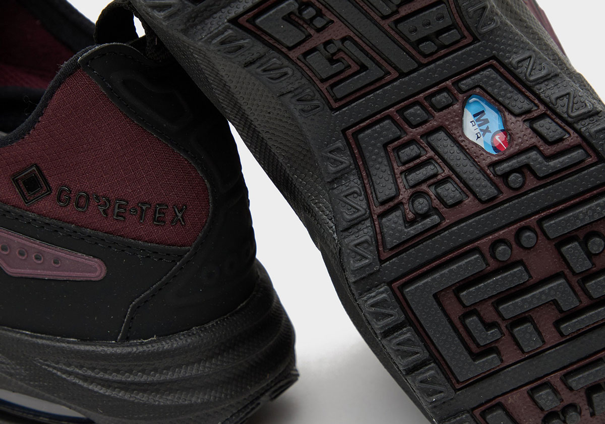 These official retailer images of the Air Max Sunder Gore-Tex reveal a new “Burgundy Crush” colorway of the women’s exclusive model, boasting a wine-red treatment of the nylon upper. It appears that the water-resistant qualities are limited to just that gridded covering, because the mudguard and the armor plating seem consistent with the non-Gore-Tex versions.