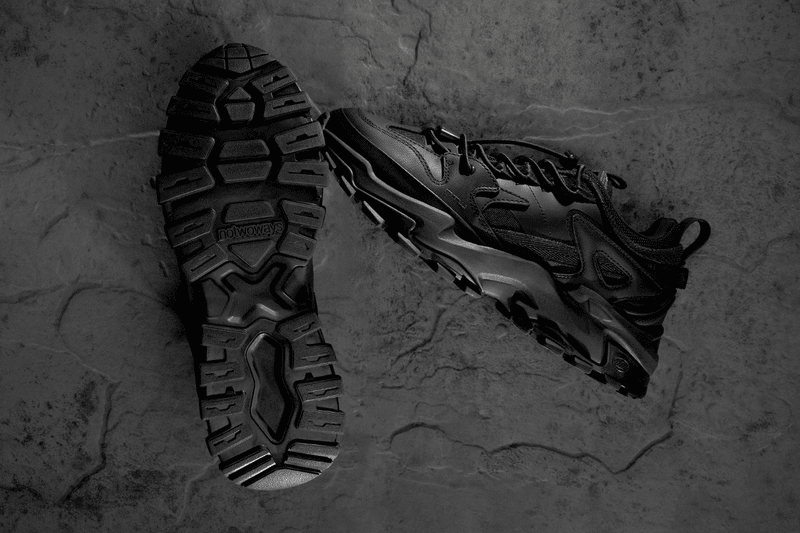After teasing their collaboration at an exclusive pop-up in London, British footwear label notwoways has announced its partnership with local MC and grime artist JME. The artist debuts his first signature model with blacked-out accents, aligning with JME's disruptive musical taste. The HKE JME Ultimate merges technical functionality through a futuristic lens, crafting rain-resistant kicks for gloomy English weather conditions. Designed to combat seasonal changes, the chunky model arrives in a black mesh base with tonal waterproof overlays. Padded collars and rubberized mudguards deliver increased support and protection, while toggled laces can be easily adjusted in the big city. Finally, shortened notwoways branding is woven into the forefoot paneling, completing the design with text-driven tongue tags and grooved outsoles packed with gripping technology for UK downpours. Take a closer look at the notwoways HKE JME Ultimate model in the gallery above. The shoe will drop via notwoways on August 29 at 6 p.m. BST for £130 GBP (approximately $170 USD).Click here to view full gallery at Hypebeast