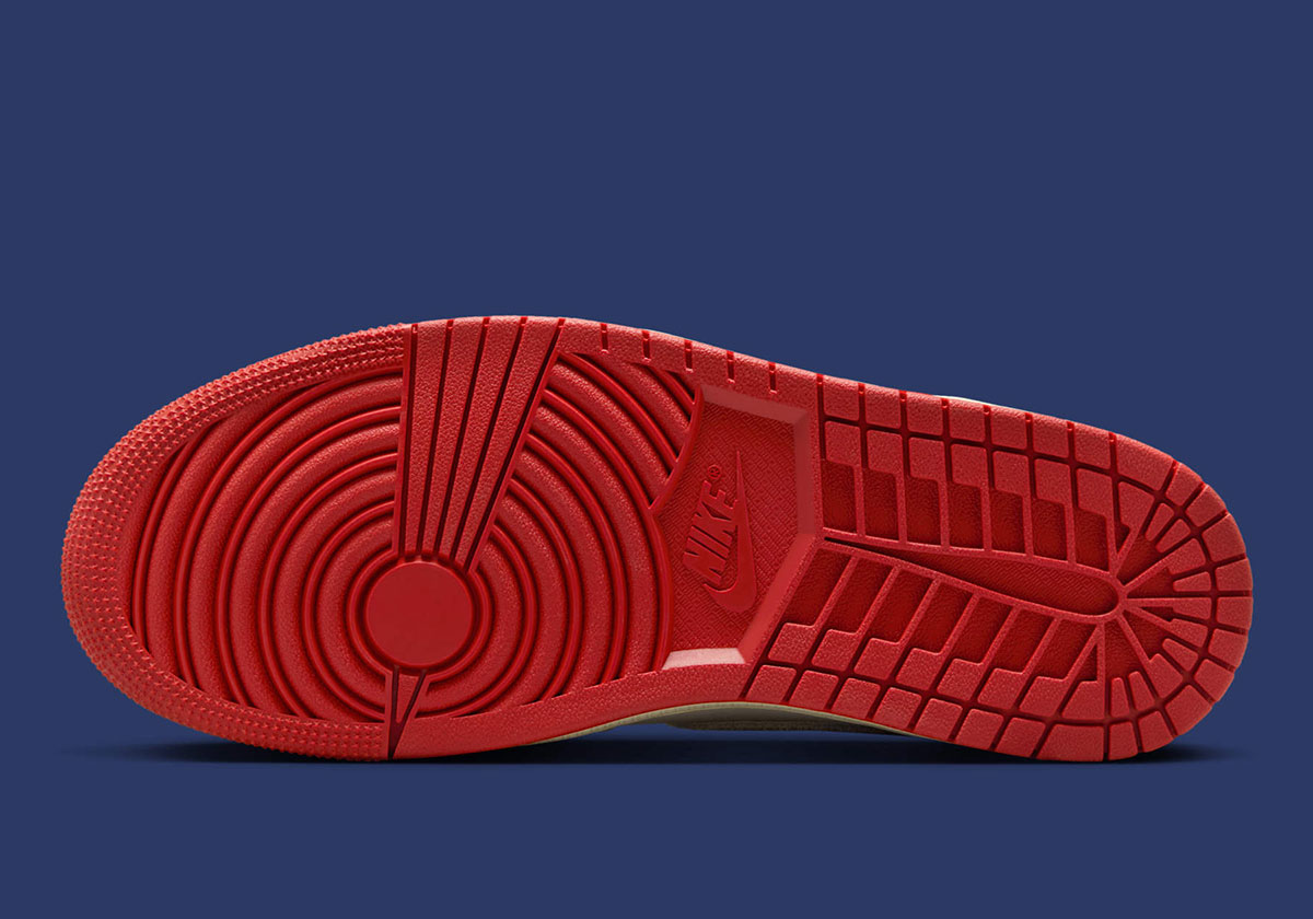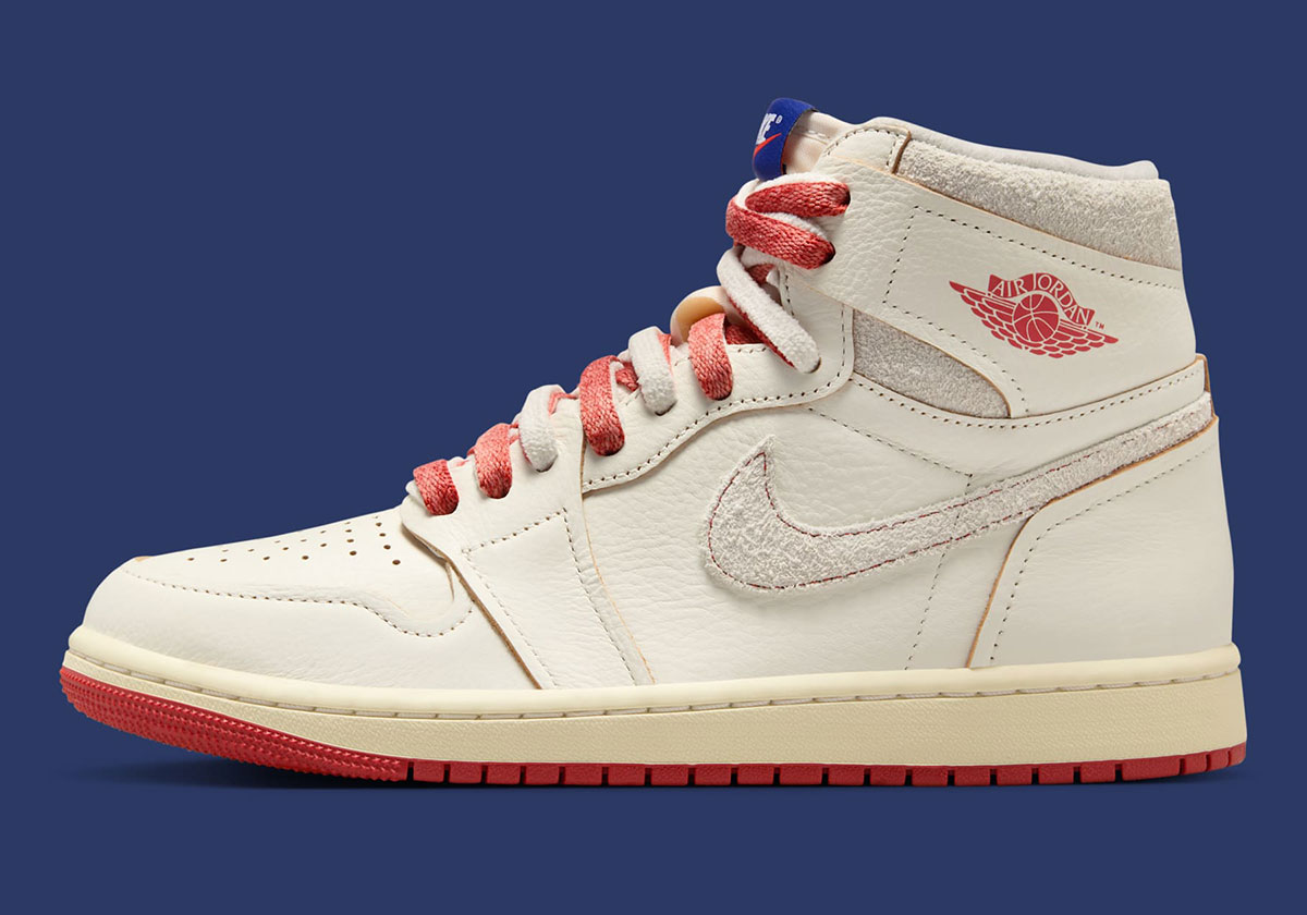 At its core, the sneaker lends a vintage aesthetic with “Sail” leather and matching suede on the Swoosh and collar. You’ll also notice that these use far less stitching than your run-of-the-mill Jordan 1, a choice that heightens focus on the upper’s chalked edges. The sneaker comes with two sets of chenille laces, one in “Sail” and another in titular “Cinnabar” red. Underfoot, a “Sail” midsole and “Cinnabar” outsole round out the delivery.