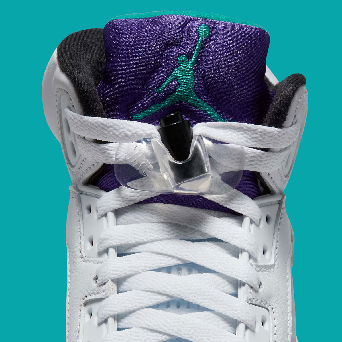 The historic year of Retro continues as Jordan Brand celebrates its 40th Anniversary with a plethora of Retro release blockbusters. This one’s extra special: not only is the Air Jordan 5 is not only celebrating its own three-decade milestone, this “Grape” colorway is launching for the first time as a re-issue with Nike Air branding on the heel.