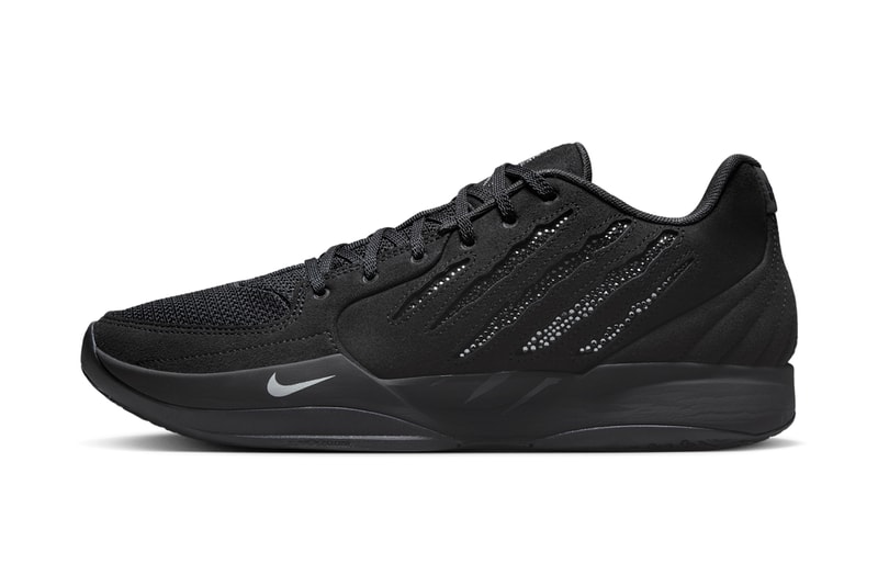 Sans the crystal embellishment, the shoe uses a straightforward color scheme with a mix of black suede, mesh and synthetics. This simple base is merely a canvas for the Swarovski detailing, however, which is applied on the tongue logo, medial Swoosh and an interesting new detail on the lateral quarter panel: a "slash" style graphic, somewhat similar to the back print on the Ja 2 "Nightmare" that's likely inspired by Morant's Memphis Grizzlies squad and replaces standard Nike branding. The inside of the tongue also adds a numbered label that states "1 of 1999," though it's uncertain at the time of writing if each pair has a different number displayed on this tag.