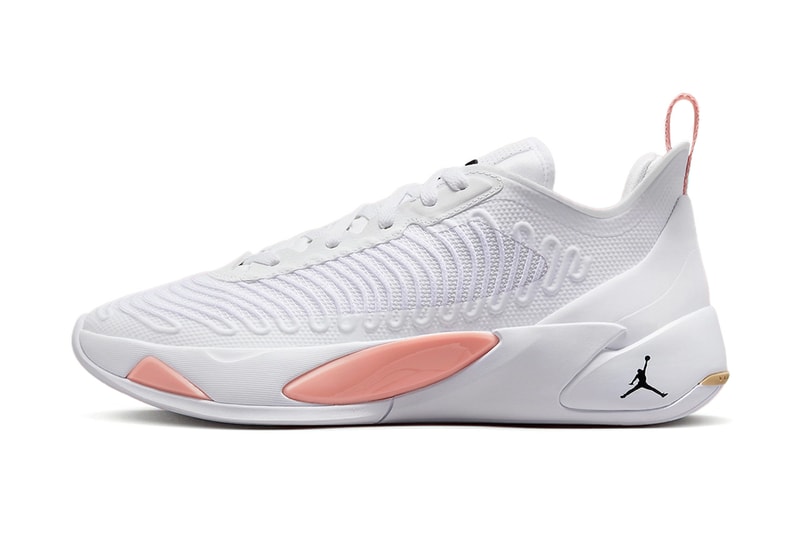 The upcoming pairs are found in white mesh uppers equipped with TPU and Flightwire cable overlays. Mismatched “non desistas non exieris,” meaning "never give up, never surrender,” and "Jordan Brand Basketball” branding decorates the medial sides while midsole molds and heel pull tabs appear in light pink. The sculpted soles consist of full-length Formula23 foam and an IsoPlate system is viewable from the icy translucent bottoms. Rounding out the look are insoles featuring labeled paw prints of Dončić's three dogs.