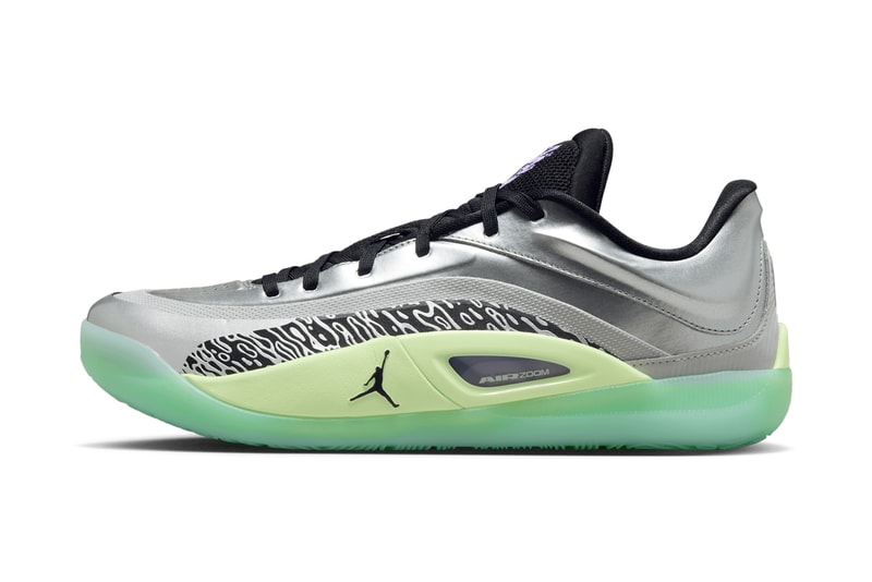 An early look at what to expect from the Jordan Zion 4 has finally surfaced, revealing a "Metallic Silver" colorway that graces the new shoe. The model maintains the lower cut of its immediate predecessor as Zoom Air cushioning is noted at the midfoot. Its layered upper leans heavily on silver here but does notably include elephant print detailing just above the midsole and its Jumpman branding.
