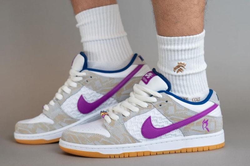 Next year, Nike is slated to release an exclusive SB Dunk Low with Brazilian skateboard sensation Rayssa Leal. Leal gained global recognition at seven when aa video of her doing a heelflip in a fairy princess costume catapulted her into fame. By 11-years-old, she was the youngest street skater to take on the Women's Final on the Street League Skateboarding World Tour. At 15-years-old, Leal created history, winning a silver medal at the sport's Olympic premiere in the 2020 Tokyo Games. The Rayssa Leal x Nike SB Dunk Low sees the classic low-top silhouette take on a pure platinum, deep royal blue, vivid purple, white and gum yellow palette. The shoe is constructed with a leather base and textile overlays with the medial heel featuring Rayssa's logo. Smiley face charms are on the laces while the tongue labels and Swoosh logo match the Rayssa logo in purple. Look out for the upcoming collaboration shoe, the Rayssa Leal x Nike SB Dunk Low, arriving in Spring 2024 at select retailers and online at Nike for $125 USD.Click here to view full gallery at Hypebeast