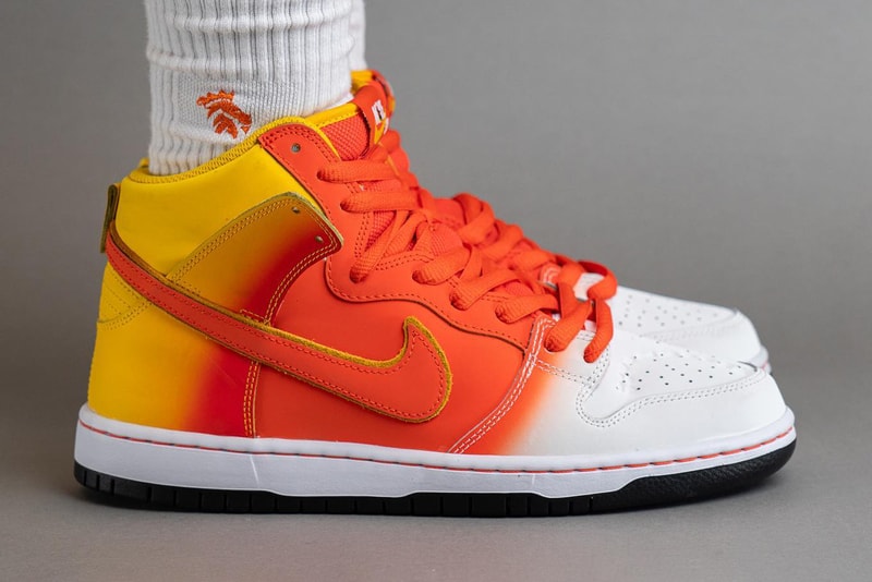 Update: Halloween may still be over three months away, however, brands are gearing up for the frightful night with various themed looks such as the Nike Ja 1 "Halloween" that just popped up. Following an initial preview, the SB Dunk High "Sweet Tooth" has surfaced with a closer look at the pair via on-foot images. Various candy corn-inspired elements such as the bite marks at the toe and warning label at the collar give the pair a fitting finish. Stay tuned for official details and peep our initial coverage below.Original Story: Throughout recent years, Nike has celebrated holidays such as Halloween with thematic sneaker releases. Last year, this included the Dunk Low with "Scream Green" accents joining "Phantom" detailing in a subtle-yet-recognizable take on the spooky season. In 2021, the Hypebeast team assembled a thorough list of the holiday's best kicks, which may see a new addition with this year's newly-previewed SB Dunk High.For Halloween 2023, Nike has prepared a "Sweet Tooth" colorway that takes on the appearance of candy corn -- a treat typically associated with this frightful time of year. Its upper features a gradient effect that goes from white at the toe to orange at the midfoot and yellow around the heel. Orange Swooshes outlined with a mustard hue add to the theme alongside the toe box including a bite mark. A thematic tongue tag includes a warning that states "DO NOT TAKE CANDY FROM STRANGERS" at the interior. Rounding things out, the sockliner displays an all-over print with candy corn spread throughout.While no release details regarding the Nike SB Dunk High "Sweet Tooth" have been shared just yet, you can expect this pair to hit shelves in October via Nike and select skate shops to coincide with Halloween. Stay tuned for official information and imagery pertaining to this much-anticipated colorway.pic.twitter.com/YYGd0NhmNC— MasterChefIan (@k9_itsiant) July 3, 2023For more of the latest news regarding Nike SB's footwear lineup this year, an early preview of a collaboration with Japanese label TIGHTBOOTH on the SB Dunk Low has surfaced. Click here to view full gallery at Hypebeast