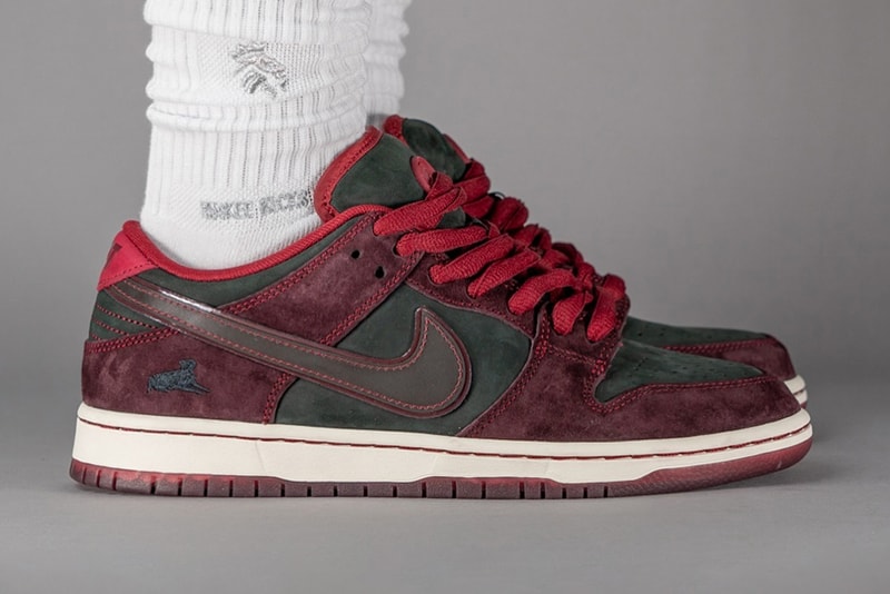 The France-based skate store has equipped the beloved silhouette with a rich maroon at its overlays and laces while offering a green-black hue at the base. An off-white stitched midsole is also present while the right shoe's heel tab swaps "NIKE" text for a "RIOT" hit. The tongue hosts a RIOT Skateshop stamp while the interior is backed by a cork insole with a final touch of co-branding.