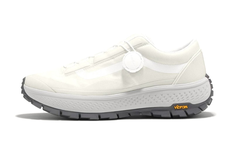 Launching in “Olive” and “White/Grey” colorways, this model boasts a clean, monochromatic look, accented by a neon orange Vibram logo on the outsole, adding a bold touch to the minimalist design.