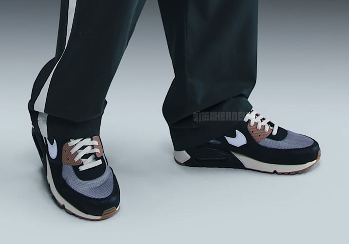 Shown here for the first time via official Nike images, one of the two upcoming pairs features a palette of “Black/White/Particle Grey/Anthracite/Gum Medium Brown.” The quarter/toe is cut from what appears to be perforated leather, while black suede can be spotted at the bottom of the tongue. Of course, the hallmark feature is a wavy mudguard akin to Patta’s line of Air Max 1 collabs from 2021-2022. While Patta’s June Air Max 90 duo complements summertime with bright accent colors, this look is decidedly more autumn-appropriate (see the “Gum Medium Brown” soles underfoot).