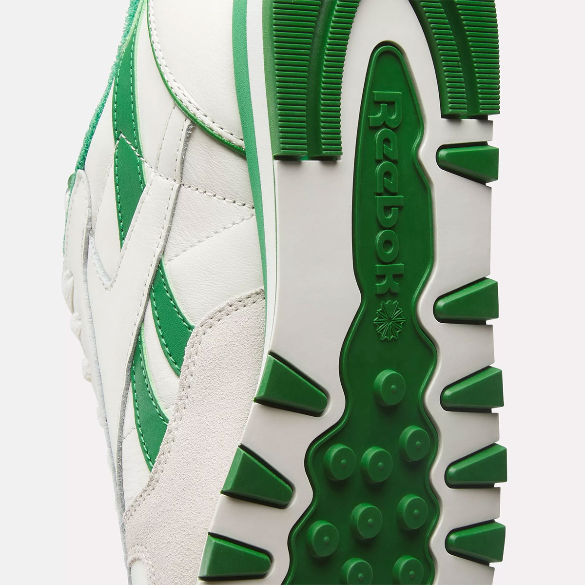 Onto the colorway. Though “Green/White” is most frequently associated with the adidas Stan Smith, Reebok has certainly had their time in the sun with the timeless color combo. Here, green is a constant contrast shade, pervasive in its application on the outsole, the split stripe branding, heel cup and sock liner. Outside of those portions, the Classic Leather stays in staid territory, utilizing a mix of grey and white for its dominant tones.