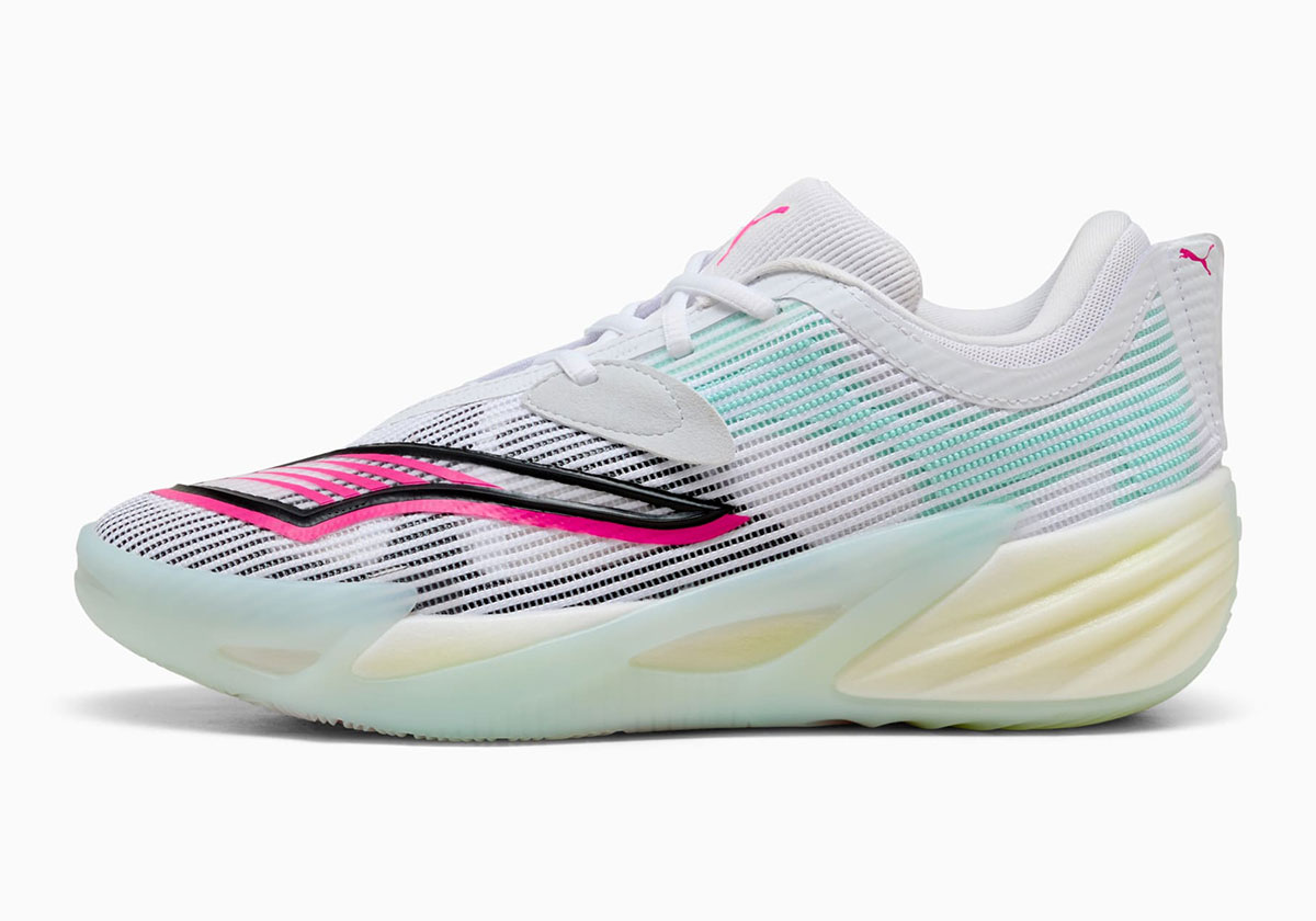 Three All-Pro NITRO 2 colorways have been unveiled thus far, led by a “White/Mint” pair releasing July 1st. PUMA will then tribute college star and current Dallas Mavericks coach God Shammgod with a “Shammgod” colorway on July 17th; a mismatched black, blue, and white pair inspired by Mavs colors and Shammgod’s synonymous crossover in the 1997 NCAA tournament. PUMA has also minted a black/multi-color pair for the Venice Basketball League, although it doesn’t has a confirmed release date as of this writing.