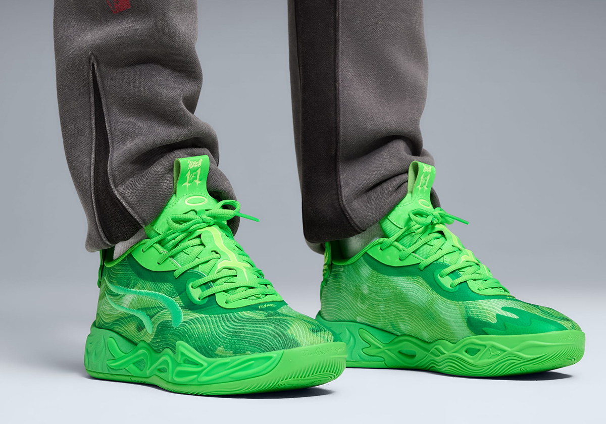 We take great care to use that specific phrasing, as anyone with basketball shoes knowledge should readily realize that things are always attention-grabbing when it comes to the Hornets superstar. Though easily digestible from a distance, you’ll see serious detail and visual depth if you look deeper into each. For the black, intergalactic “Dark Amethyst” flair seeps into the mix with iridescent finishes on the tongue, while the white cooks up hazy streaks of white within the upper. Though built on primary colors, the “Green Glare” and “Ultra Blue” make heavy use of hi-vis shades in doing so, with the latter’s use of aquamarine down the throat of the shoe particularly effective.