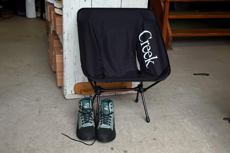 Quiet Mountain Cafe and Creek Angler's Device are reuniting after a collaborative 2024 pop-up hosted at Blue in Green Soho, and this time around, they're saluting Japanese store EPOCH's 10th anniversary through two collaborative products: a pair of boots and a custom Helinox chair.Dressed in a "Sage Green/Black" colorway, the boots do away with the low cut typically employed on Creek Angler's Device footwear for an over-the-ankle construction with seven eyelets. Made of suede and nubuck — save for the ripstop overlay that secures the eyelets to the upper — the boot uses a tone that's almost robin's egg blue on its quarter and the aforementioned eyestays before switching to the aforementioned "Sage Green" shade on the tongue, throat and collar. The color scheme is completed by a black rubberized toebox, mudguard and heel overlay, while black midsoles and outsoles sit below. Last but not least, a large white Quiet Mountain Cafe hit is present on the tongue, while a debossed tonal Creek logo appears on the lateral heel and another is printed in white on the insole. The packable chair, for its part, is presented in black with white Creek Angler's Device and Quiet Mountain Cafe branding. View this post on InstagramA post shared by creek_anglers device (@creek_anglersdevice) A price for either item has yet to be announced, but both will be available in-store at EPOCH tomorrow, April 29. At the time of writing, no information regarding an online release has been shared.Click here to view full gallery at Hypebeast