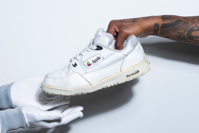 Featuring all-white leather panels, perforations on both the toebox and sides, visible air units, and a stitched, retro rainbow Apple logo, acquiring the sneakers was hugely symbolic for Robertson, who has plans to launch a museum-cum-gallery and a coffee table book dedicated to Apple memorabilia. Speaking to Hypebeast, Robertson said that his project, "Thinking Different: Archive of Innovation, " will combine merch, apparel, and vintage tech from Apple's past to help tell the brand's story. "About a month ago, he saw my vintage collection of Apple clothing and electronics," says Robertson, "and we then started talking about the Apple sneaker on Sotheby's listed for $50k. He mentioned that he had a pair and wanted to donate his pair to the project."