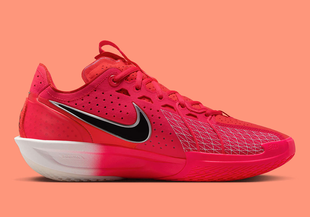 In the realm of basketball shoes, vibrant palettes remain an extremely reliable formula, matching the speed and flash they aim to encapsulate from a performance standpoint with the aesthetics to match. That makes the “Siren Red” GT Cut 3 at hand a natural choice, pairing a heavy dose of the titular tone through the upper with a split midsole that glances at pure white under the heel. A flare of “Atomic Pink” on outsole and some grounded depth with the jet black Swoosh round out the arrangement, a complementary embrace of hi-vis design.
