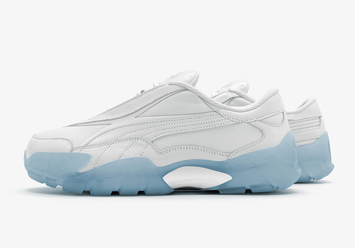 Save for his debut iridescent pair, most of Skepta’s PUMA shoes have favored dark neutral tones. That’s not at all the case here, with the Skope Forever appearing in two colorways featuring crisp all-white leather/mesh uppers. One comes with an icy blue gum sole, while the other lends a more contemporary feel with black underfoot. Both feature metallic silver midfoot plates and “PUMA” text within the rubber material, although it’s hardly visible on the black colorway.