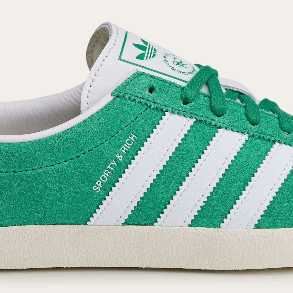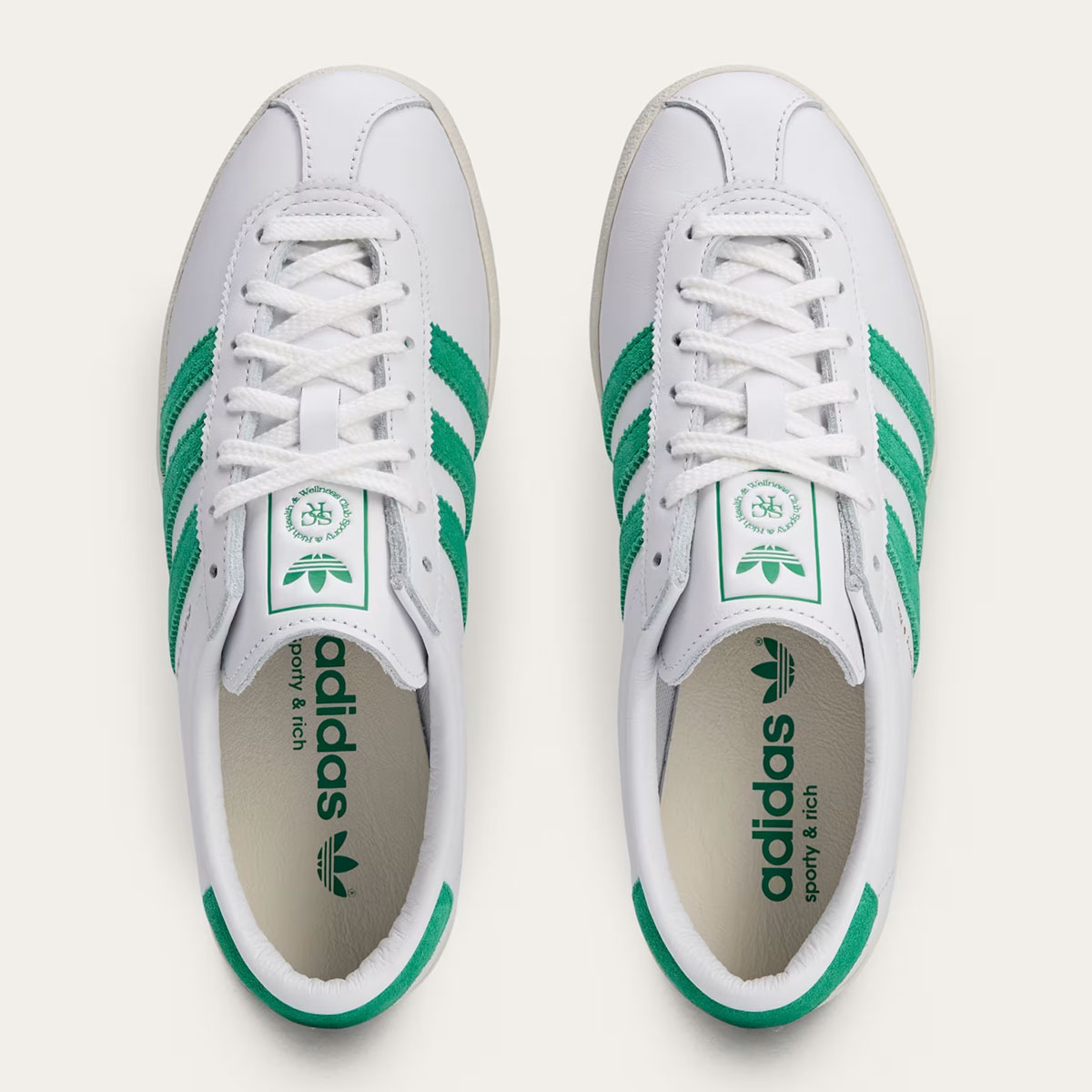 The adidas Blanc isn’t an archival model, but rather a modern re-interpretation of the adidas Diamant. It’s got a low, curved collar and many long-established adidas design cues; serrated stripes, herringbone tread, a slim toe cap – you get the gist. Considering Sporty & Rich is largely rooted in preppy 70s and 80s fashion aesthetics, they’re an obvious choice for the model’s first ever collaboration.