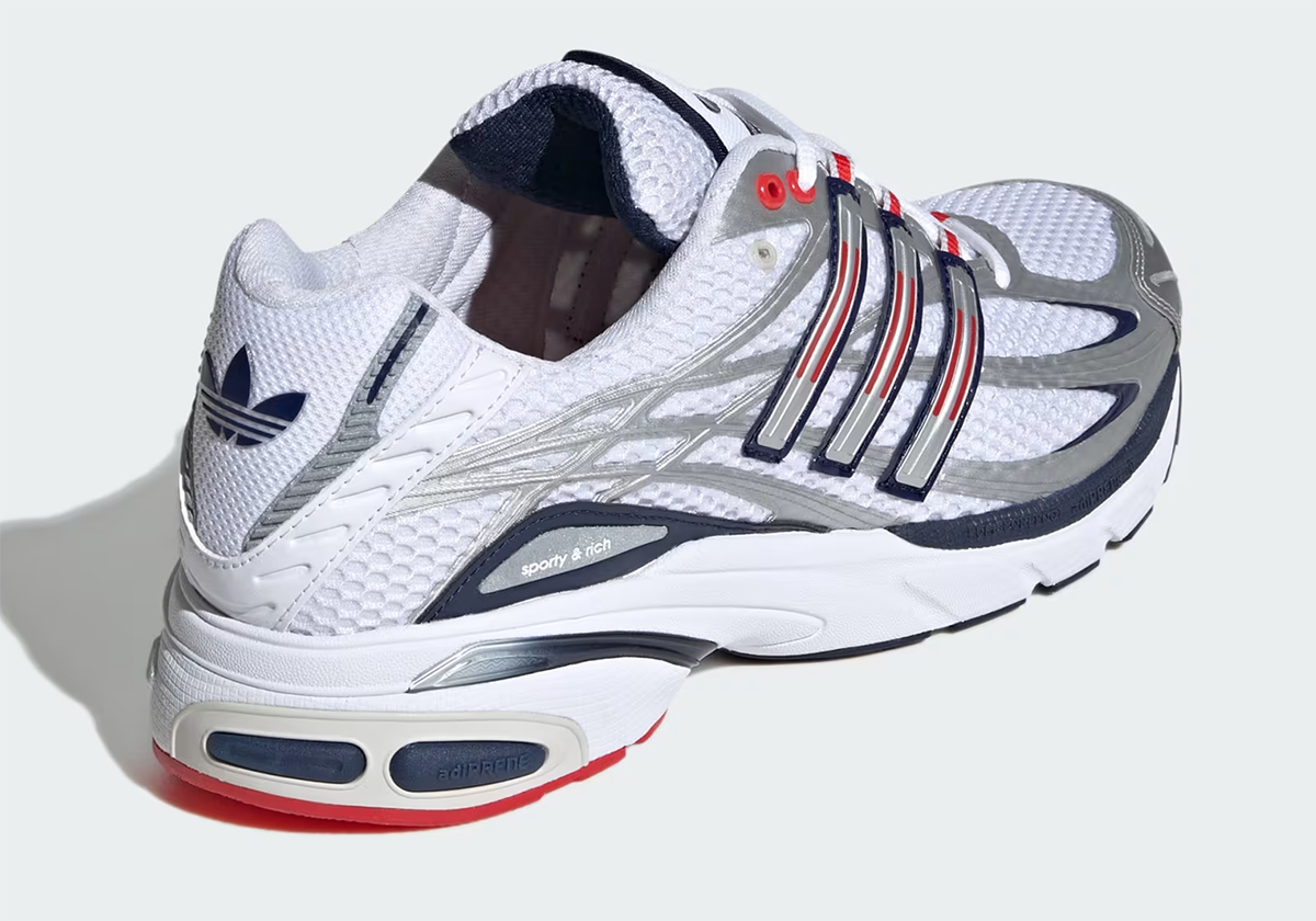 For the adistar Cushion, that silhouette’s techy appeal lives on with a heavy smattering of metallics. Those same Americana notes of navy & red and applied tastefully throughout the shoe’s profile, appearing in synthetic graphic swatches towards the toe-box and outlining the Three Stripes branding, as well as weaving throughout the midsole. That last detail is emphasized by an adidas Trefoil gold medal hangtag that arrives with all three, physically expressing the quest for gold that US and global athletes will embark on in just a few short days.