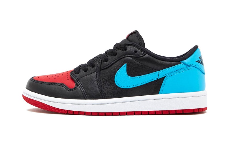 Serving as a follow-up to 2020's Air Jordan 1 High OG and more recently the Air Jordan 2 Low "UNC to Chicago," Jordan Brand is now set to deliver a women’s Air Jordan 1 Low OG centered around the mashup colorway. The upcoming release serves to continue the nod to Michael Jordan's time playing for the University of North Carolina at Chapel Hill and the Chicago Bulls during his career.Offering a mix of "Black/Dark Powder Blue/Gym Red," the Air Jordan 1 Low OG "UNC to Chicago" features a premium black leather base with perforated red at the toe region and light blue extending from the midfoot Swooshes to the rear. Additional detailing comes in the form of mesh tongues, matching lining, "NIKE AIR" tongue tags, and Wings motifs at the rear. Finishing up the design of the shoe are printed insoles, white midsoles, and contrasting red rubber outsoles.Priced at $140 USD, the Air Jordan 1 Low OG WMNS "UNC to Chicago" is now set to arrive July 26.For more footwear news, the Nike Cortez receives a shrouded "Yin and Yang" makeover. Click here to view full gallery at Hypebeast