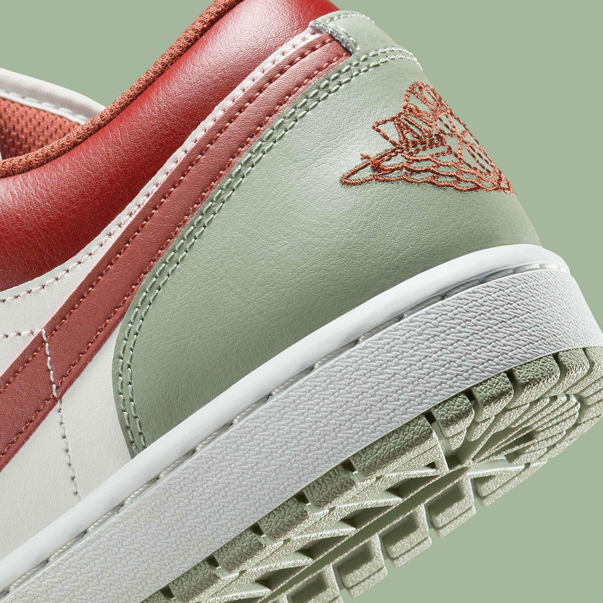 Indeed, though it’s a simplistic tri-tone arrangement at hand, the Air Jordan 1 Low “Jade Horizon” brings some unconventional energy by centering its “Redstone” hues around the rear of the shoe. Collar, Swoosh, and branding all unite in the fiery shade, leaving the rest of this design’s real estate to pure white and the titular tone. It may be a bit more expressive than your usual run-of-the-mill neutral fare, but the classic atmosphere that defines this GR means it’s just as well suited for everyday use as any you’ll find on the shelves.