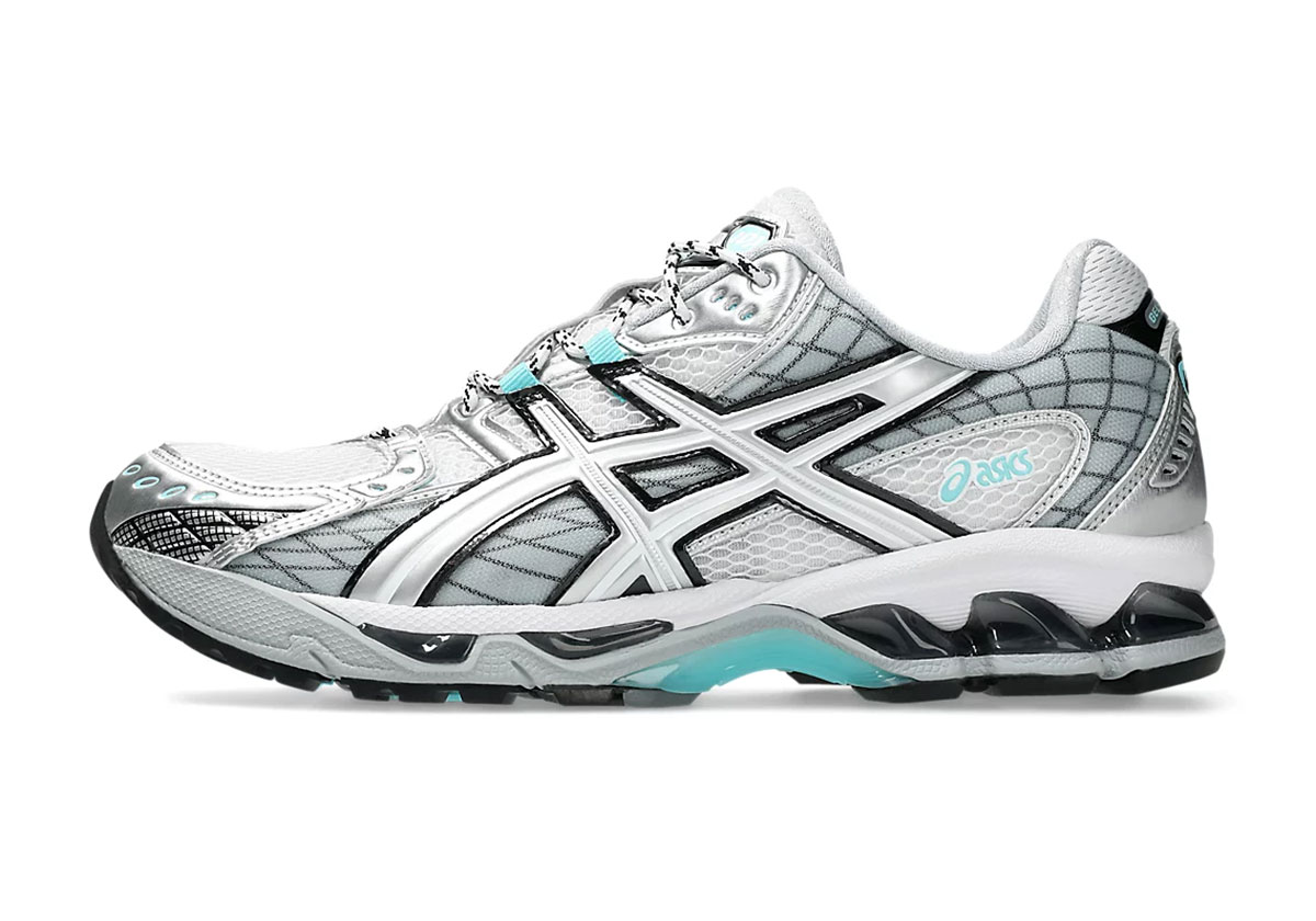 What sets this pair up for heavy summertime wear is its “if it ain’t broke, don’t fix it” approach. The standard Y2K formula of white mesh, metallic overlays, and neutral accents in between remains in place, allowing the contrasting patterns that GEL-Nimbus 10.1 continues to champion to shine all the more. The “Diamond” tones sneak in with reserve roles, making a subtle yet impactful entrance at the nylon eye-stays, branding at the heel, and the underfoot plate at the shoe’s midpoint.
