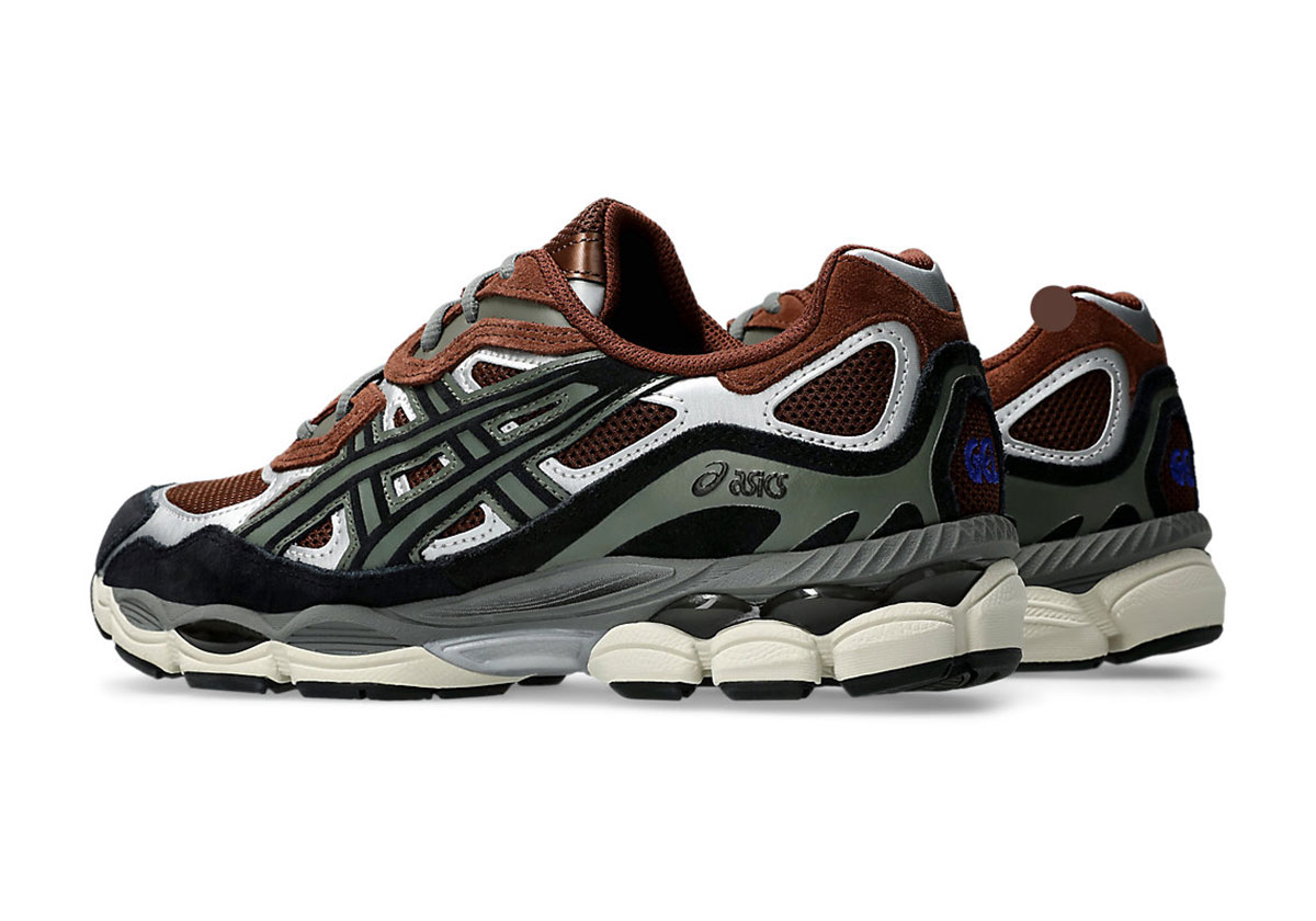 In similar fashion to the “Mocha” colorway that hit shelves this summer, this edition applies an equal dose of earthy and metallic tonality. A chrome leather throughline paces down the quarter on either side, but as you work up, those reflective notes are replaced entirely by more natural counterparts. A hit of royal blue on the tongue ASICS logo and a dose of off-white at the midsole each provide marked contrast to close out an overall off-kilter profile.