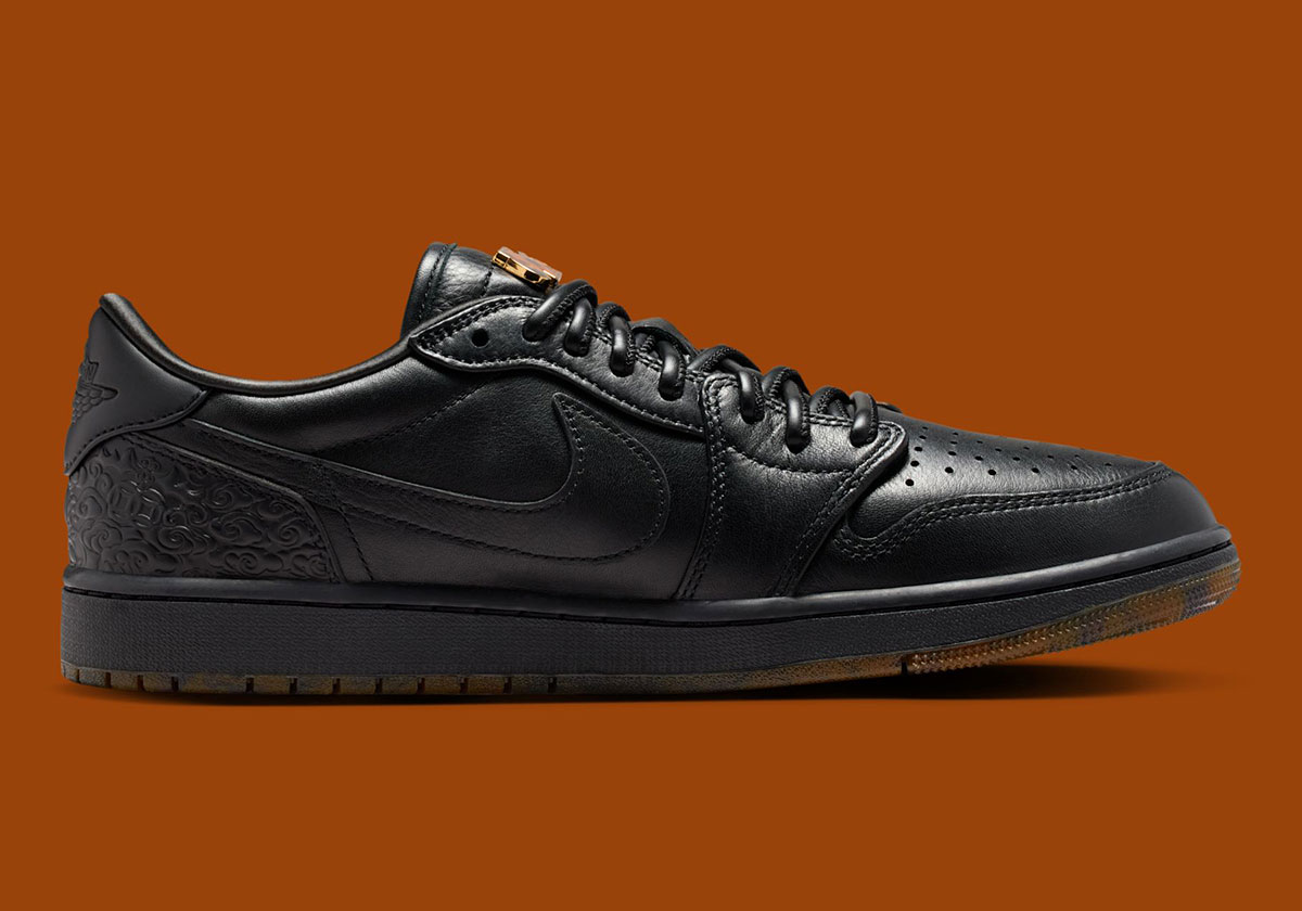 Drawing inspiration from Chinese mythology, this Air Jordan 1 Low Retro OG “Xuan Wu” features a full black leather upper with an elegant pattern expressed on the heel. Inspired by snakes and tortoise shells, this ornate decoration appears carved into the upper to create an ancient look and feel.