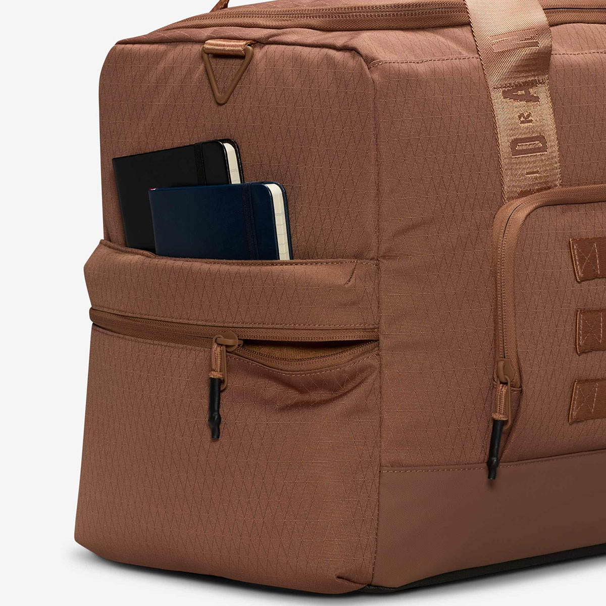 The Jordan Collectors Duffel Bag features four compartments that will easily fit four pairs of Jordans (or any other sneaker brand you choose to bring with you). It’s built with the durable CORDURA® fabric, which features a water-repellent finish while also being resistant to common abrasions seen during the arduous travel experience. There are indeed bags out there that will fit your shoes, but the CORDURA is a nice feature.