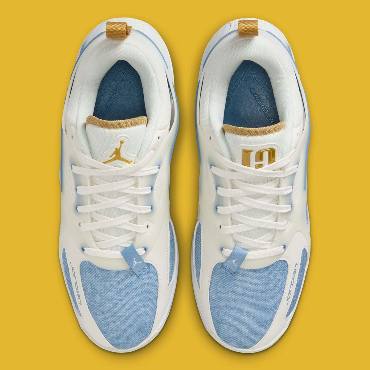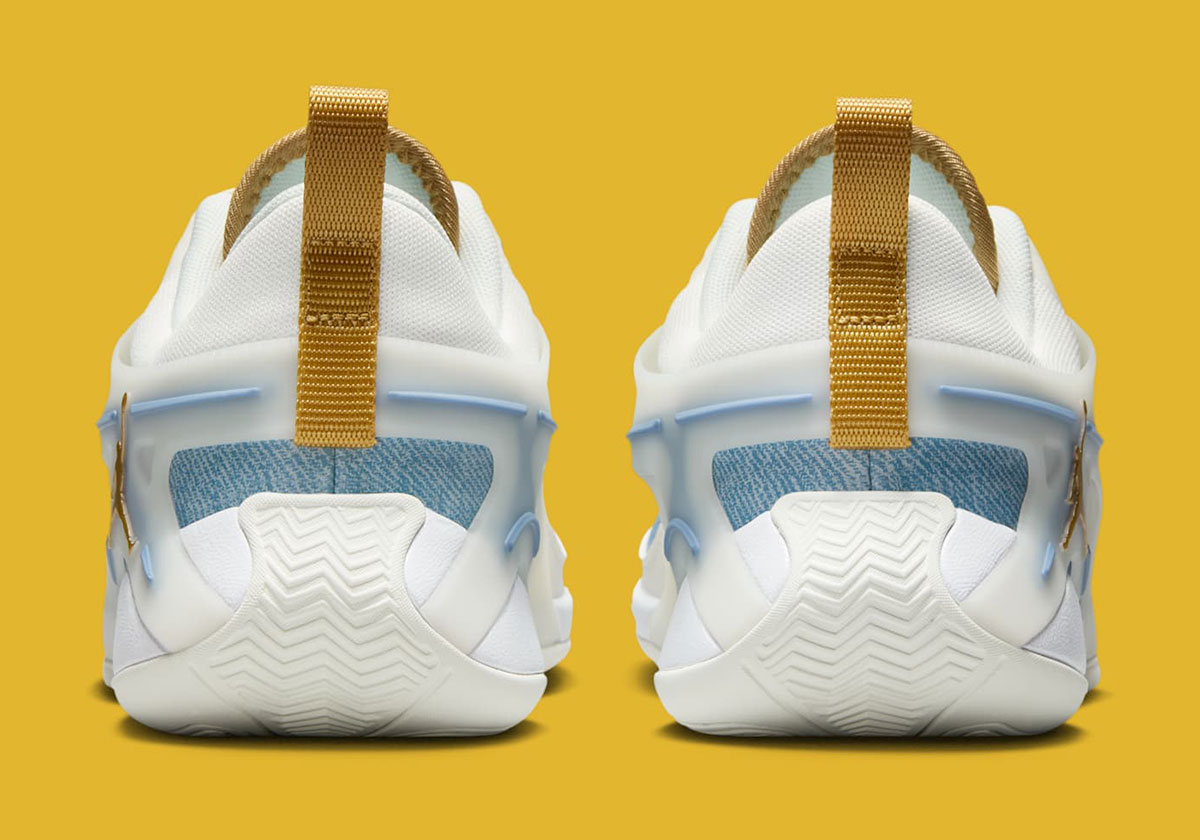 Denim versions of modern-day Jordan models aren’t unprecedented (as seen multiple times on Jayson Tatum shoes), but there’s something undeniably off-beat about the lifestyle-leaning textile appearing on a performance shoe. Whether that’s a good or bad thing is for you to decide.