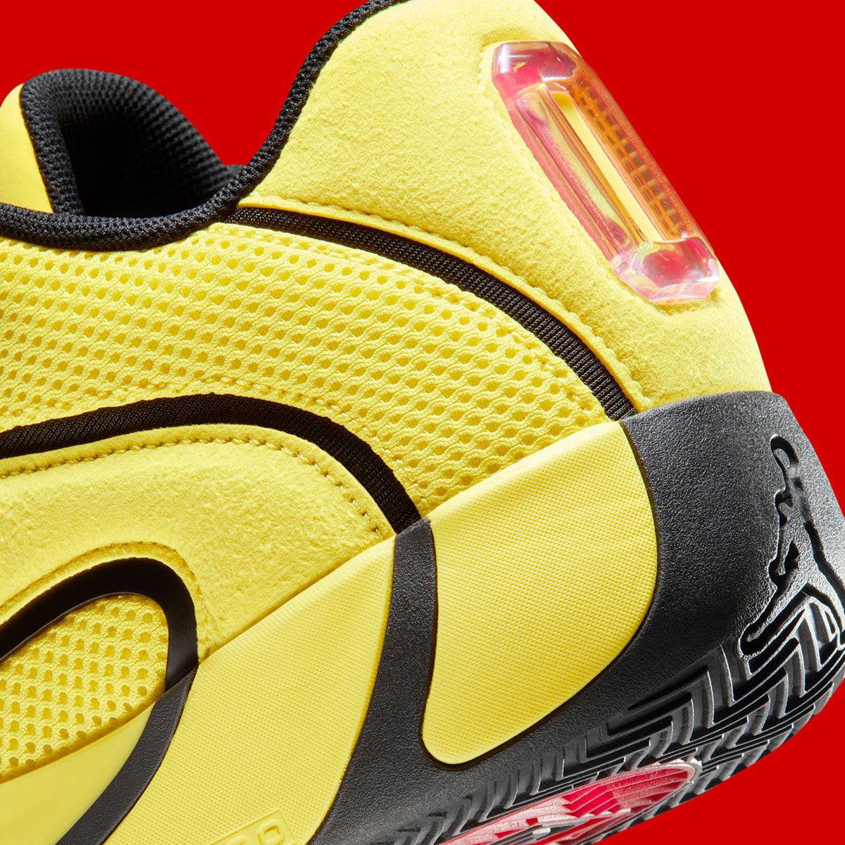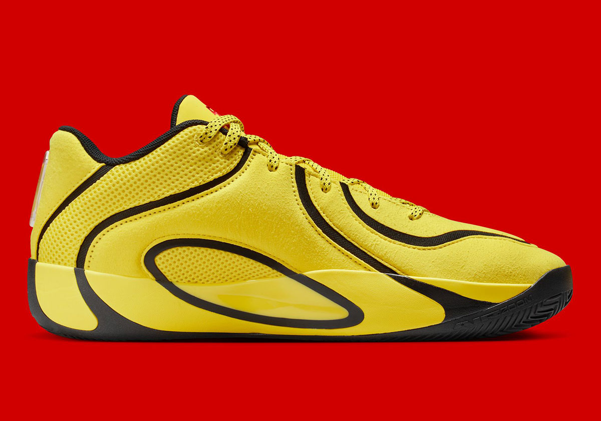 Official images of the Jordan Tatum 4 “Christmas” reveal a full yellow/black upper with a electric shade covering the majority of the build. Touches of bold red are featured on the tongue logos and the jeweled double-zero on the heel, while Deuce and Dylan embroidery on the tongue are set to match. Immediately, we’re hit with memories of the Kobe 5 “Bruce Lee”, arguably the most iconic colorway of that model. And given Tatum’s adoration of the late legend, this is more than mere coincidence.